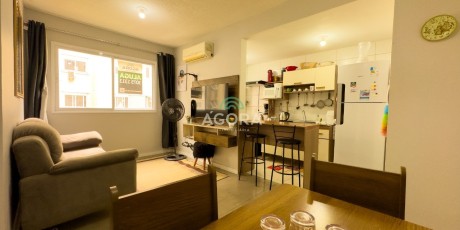 Ágora cia imobiliária aluga : Apartamento mobiliado, com 2 (dois) dormitórios, sala de estar com split, cozinha totalmente equipada, banheiro social, área de serviço com maquina de lavar, vaga para 01 carro descoberta. Aluguel mais encargos