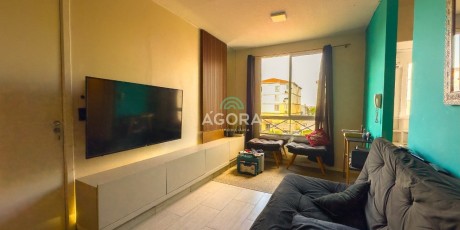 Ágora Cia Imobiliária Aluga: Apartamento totalmente mobiliado com 02 (dois) dormitórios, ambos equipados com armários. A sala de estar conta com sofá, mesa e rack, proporcionando conforto e praticidade. A cozinha é equipada com armários planejados, fogão e geladeira, forno, micro-ondas e a área de serviço dispõe de máquina de secar. O imóvel possui ainda banheiro social com box e 01 (uma) vaga de garagem descoberta. Localizado em andar alto, em condomínio tranquilo e bem estruturado. O condomínio oferece portaria 24 horas, piscina adulto e infantil, salão de festas, quiosque e quadra esportiva, garantindo segurança e lazer para toda a família. Aluguel mais encargos.