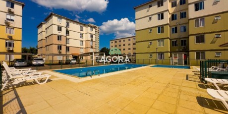 Ágora Cia. Imobiliária Aluga Casa em condomínio fechado,semi mobiliada, com 02 dormitórios, sendo 01 suíte; living amplo com porta-janela, cozinha com armários, geladeira, fogão, área de serviço, pátio privativo e 02 vagas lado a lado. Área de 53m² privativos.O conforto, tranquilidade e segurança de morar em um condomínio fechado com toda infraestrutura que você e sua família merecem: campo de futebol gramado, quadra de areia, quadra poliesportiva, piscinas adulto e infantil, playground, quiosques com churrasqueiras e 2 amplos salões de festas. Localizada próximo a Ulbra, com fácil acesso a BR-116 e ao novo ParkShopping Canoas. Aluguel mais encargos.