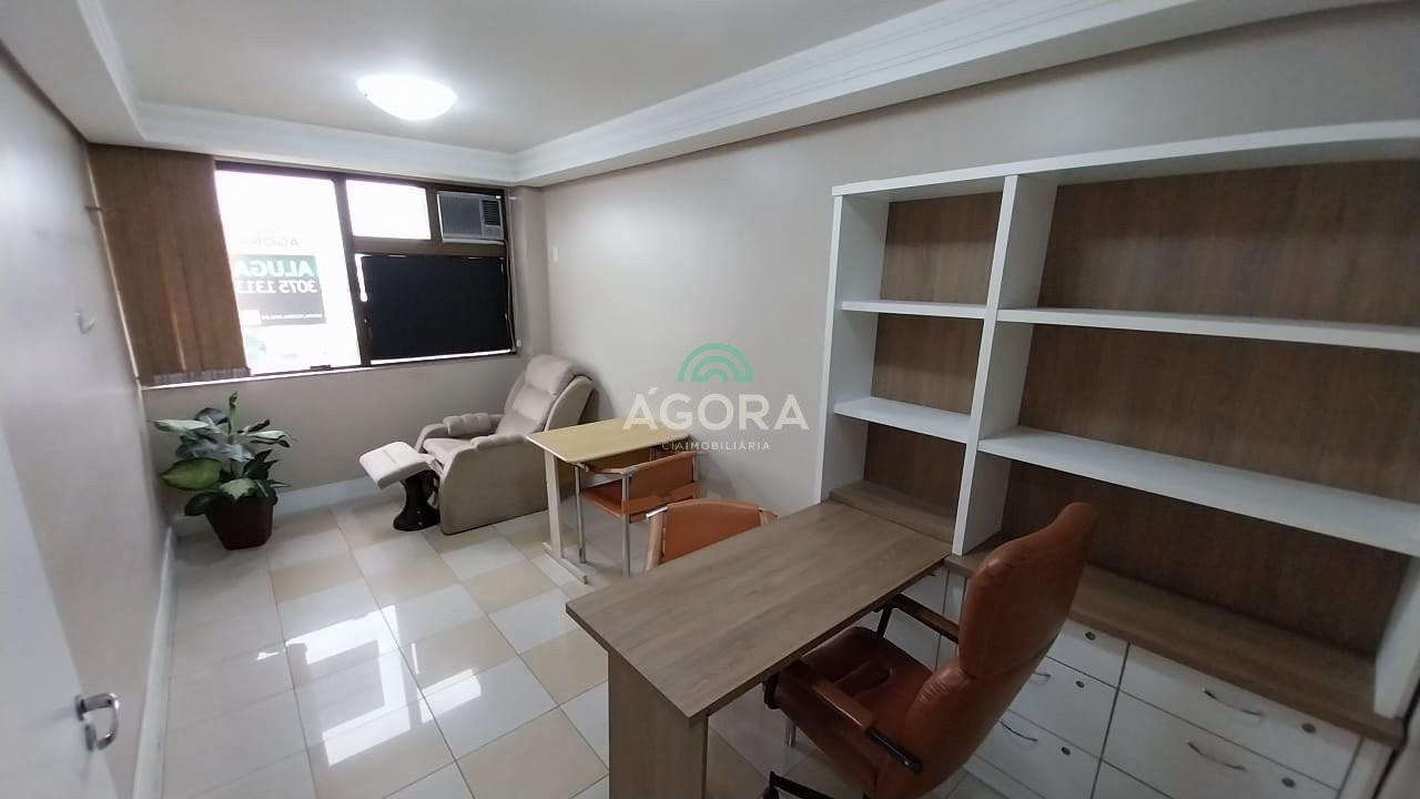 Ágora cia. Imobiliária aluga: excelente sala comercial mobiliada, com 44,23m², recepção com balcão, cadeiras e ar condicionado, consultório com mesa e estante, poltrona e ar condicionado, banheiro com armário para depósito. Prédio com portaria 24h. Monitoramento de câmeras com app remoto. Aluguel mais encargos.