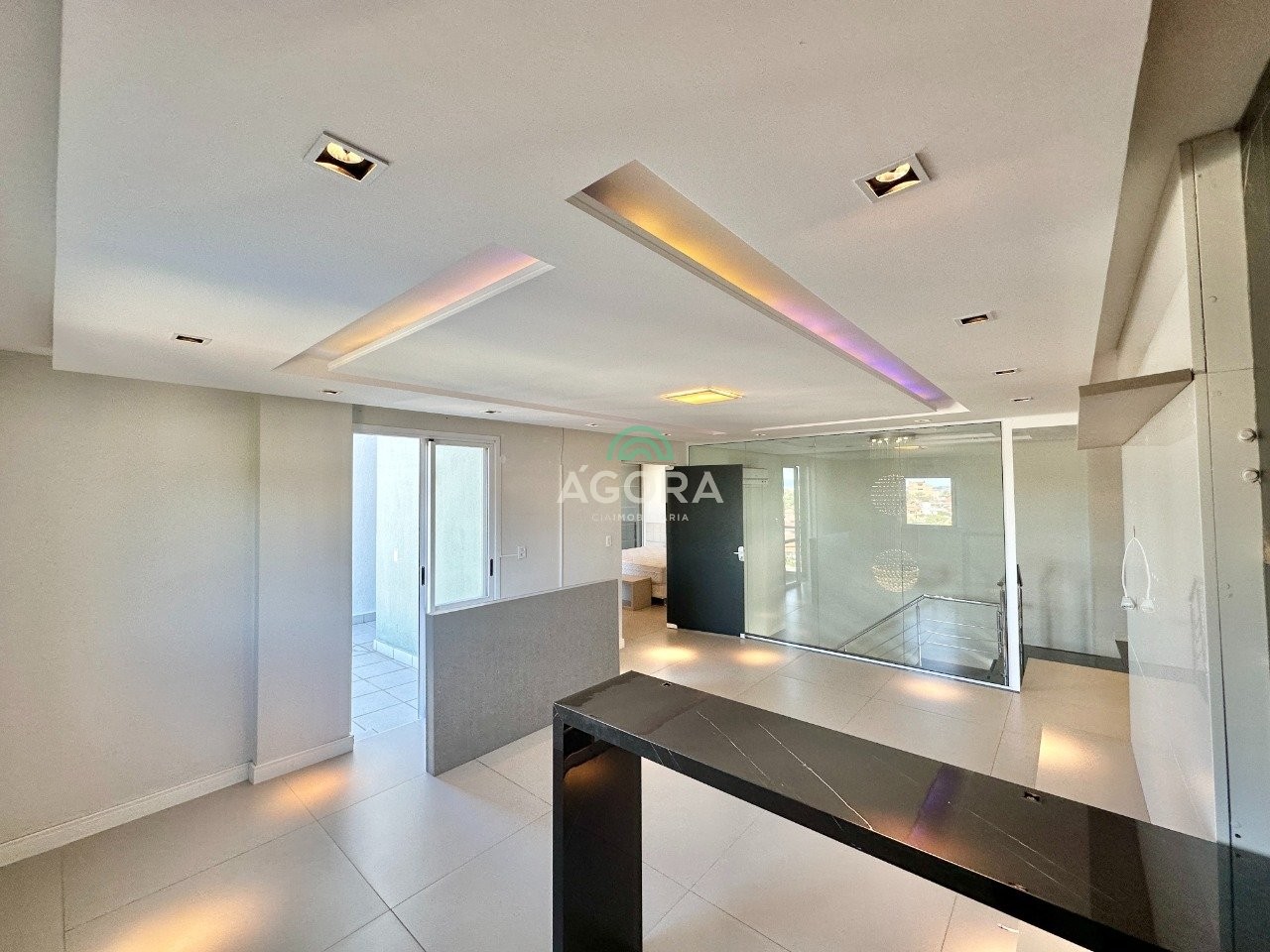 Ágora cia imobiliária aluga: excelente cobertura semi mobiliada, composta de 3 (três) dormitórios, sendo 2 (duas) suítes , todos os ambientes com teto rebaixado em gesso, os dormitórios, sala e banheiro contam com luzes de led, churrasqueira revestida de porcelanato italiano, 2 (duas) vagas de garagem (descoberta). Aluguel mais encargos condomínio com elevador, playground e salão de festas.