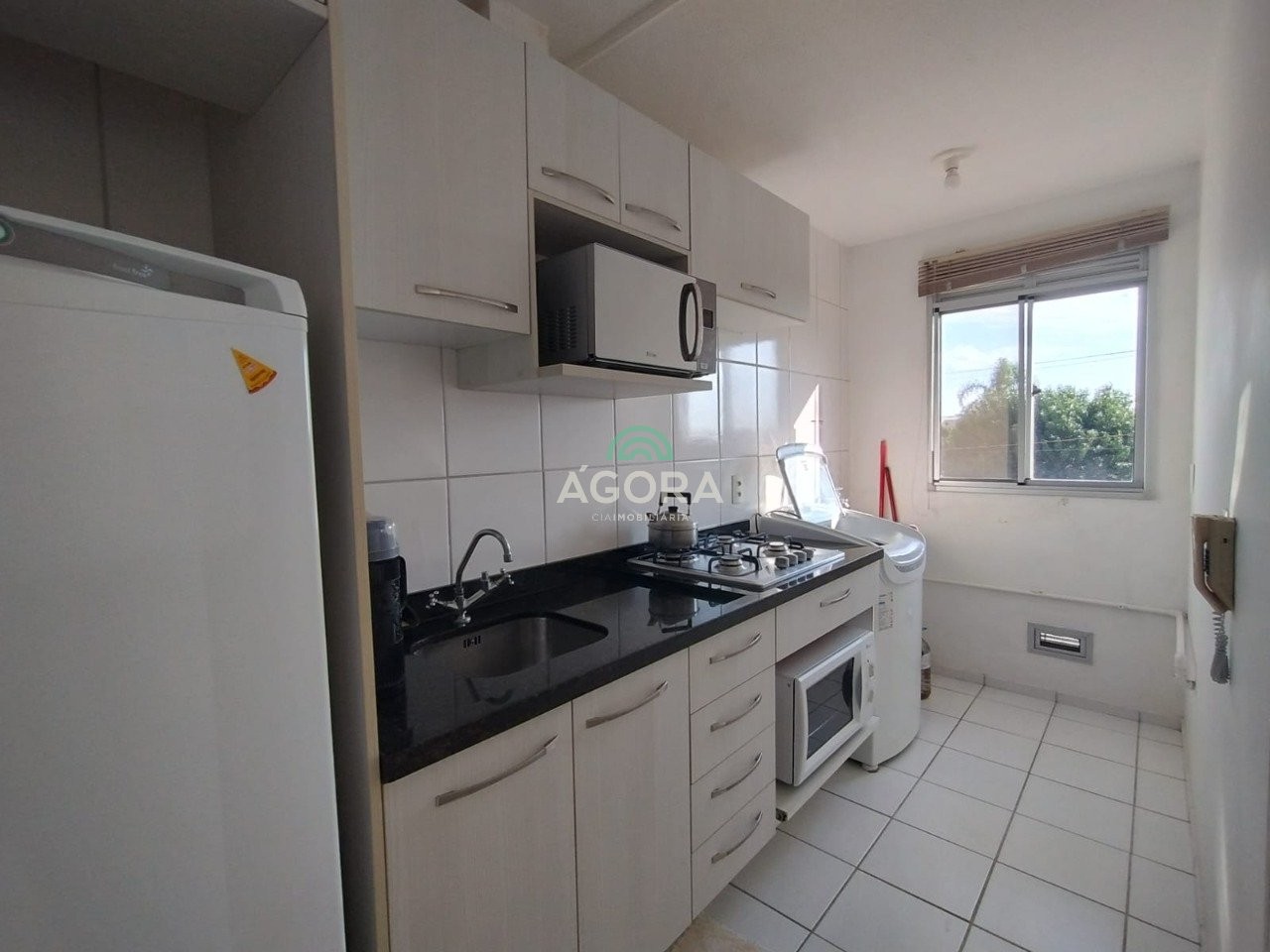 Apartamento semimobiliado, com 02 dormitórios, sala de estar, cozinha, área de serviço, banheiro social, 01 box para carro (descoberto. ) fazem parte da locação somente móveis planejados da cozinha e quarto, e ar condicionado! Aluguel mais encargos condomínio com portaria 24hs, salão de festas, elevador. Fica a 5 min do centro de canoas.