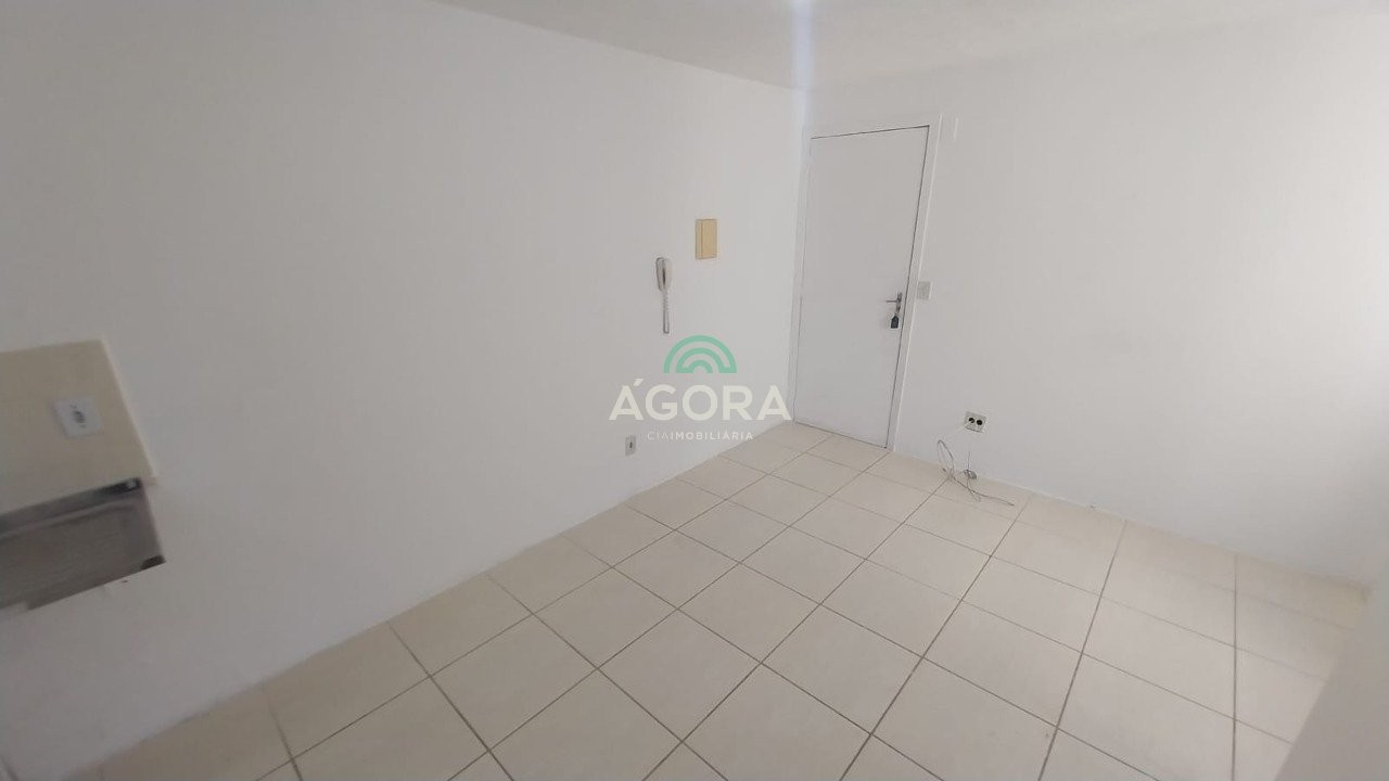 Apartamento com 02 (dois) dormitórios, sala estar e jantar, cozinha, área de serviço, banheiro social, 01 (um) box automóvel rotativo. Aluguel mais encargos. Condomínio possui salão de festas, playground, churrasqueira coletiva, portaria 24 horas, zeladoria, portão eletrônico.