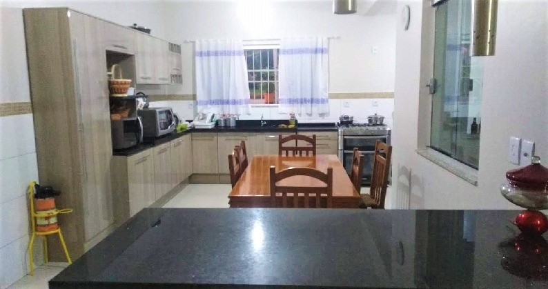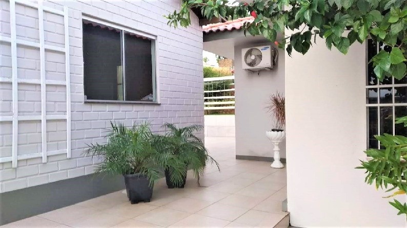 Casa residencial com 3 (três) dormitórios, sala de estar com sacada, gabinete, cozinha, varanda, banheiro social, banheiro privativo, banheiro auxiliar, área de serviço, garagem para 3 (três) carros, possui 3 (três) aparelhos de ar condicionado, portão eletrônico, grade nas aberturas, salão de festas com churrasqueira, possui pátio nos fundos. Aluguel mais encargos