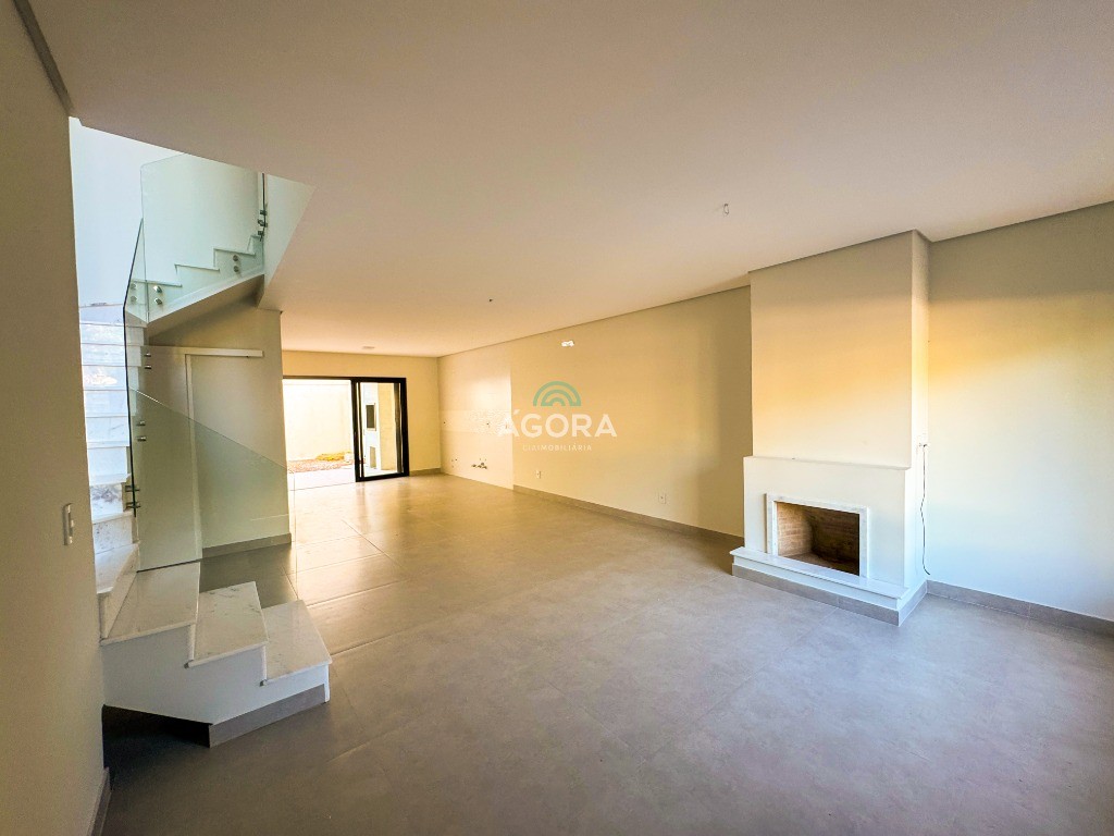 Ótimo sobrado com 169,90m² privativos, 3 (três) suítes sendo uma master, sala íntima que pode ser usada como escritório, sala de estar com lareira integrada com a sala de jantar, cozinha estilo americana, área de serviço, lavabo, área gourmet com churrasqueira, pátio nos fundos com espera para piscina, espera de água para geladeira, vaga para 2 (dois) carros.