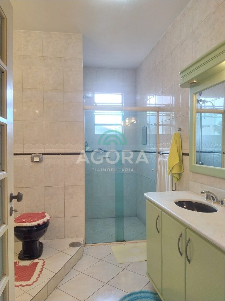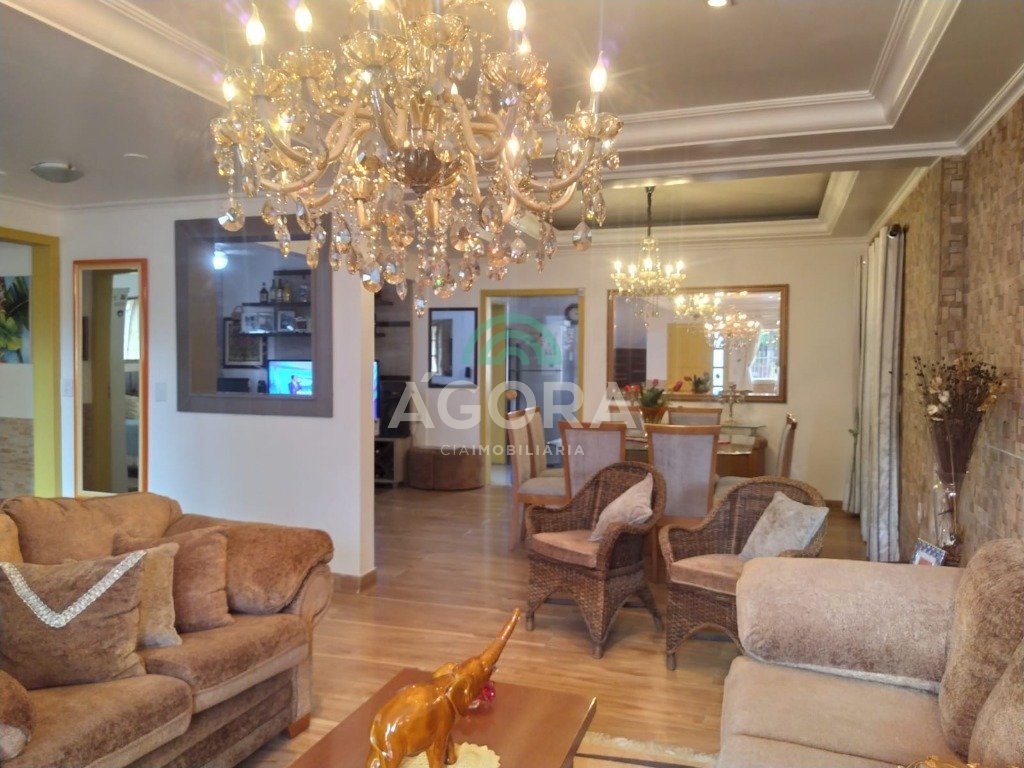 Sobrado com 3(três) dormitórios, sendo 2(duas) suítes, uma delas com banheira de hidromassagem e 1(um) dormitório no térreo, sala de estar com lareira, sala de jantar, cozinha planejada, banheiro social, lavabo, área de serviço, espaço gourmet com churrasqueira rotativa, pátio com piscina, vagas cobertas para 3(três) veículos e 1(uma) vaga descoberta. Anexado ao sobrado, um pequeno apartamento com acesso interno, sendo 1(um) dormitório, banheiro social, sala de estar, sala de jantar e cozinha integradas.