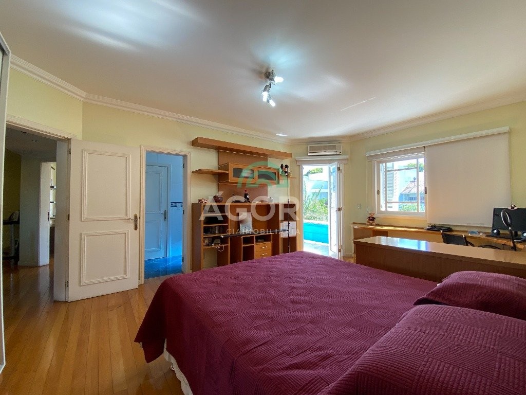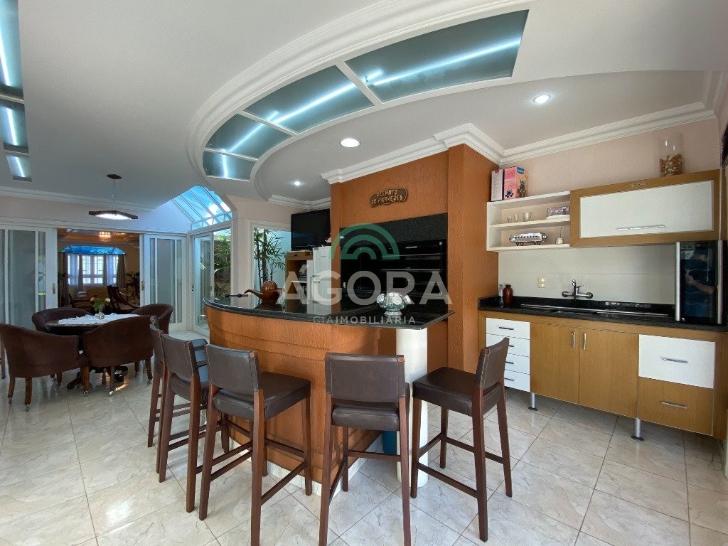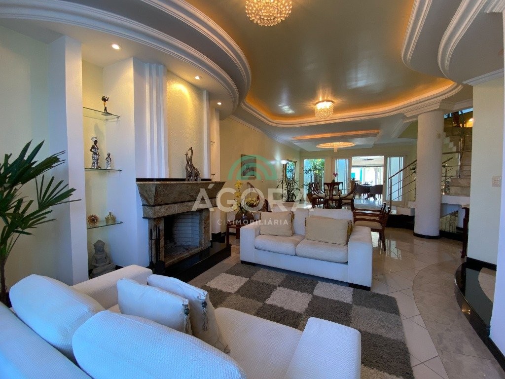 Ágora cia imobiliária venda: sobrado com 540m² privativos, 4(quatro) suítes, sendo 1(um) suíte master com banheira de hidromassagem, closet e sacada, 2(duas) salas de estar com lareira, sala de jantar, cozinha planejada, espaço gourmet e bar, lavabo, área de serviço, banheiro externo, pátio com piscina e quiosque, terceiro pavimento com academia completa, e 1(uma) das suítes, vagas para 4(quatro) veículos. Localizado no bairro jardim do lago.
