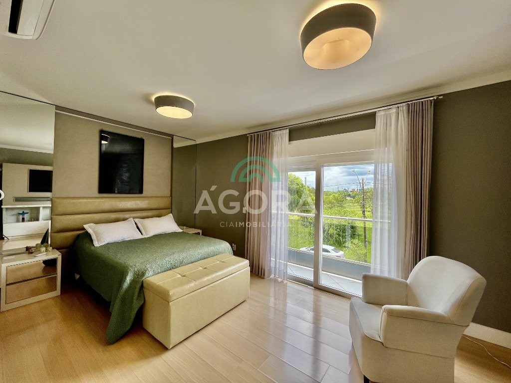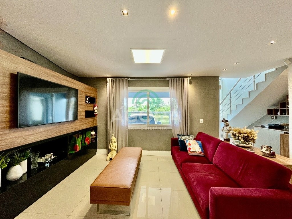 Ágora cia imobiliária vende: sobrado semimobilaido com 180m² privativos, de 3(três) dormitórios, sendo 1(uma) suíte. Living integrado entre sala de estar, sala de jantar e cozinha com ilha, churrasqueira, banheiro social e área de serviço separada. Aos fundos pátio coberto com teto retrátil e jacuzzi. Em frente garagem para ate 4 veículos, e pátio lateral. Permanece no imóvel os móveis planejados em todos os cômodos, lareira ecológica no living e na suíte e aparelhos de ar condiconado