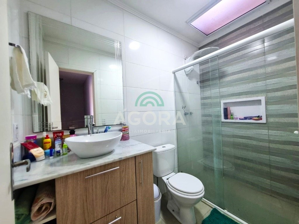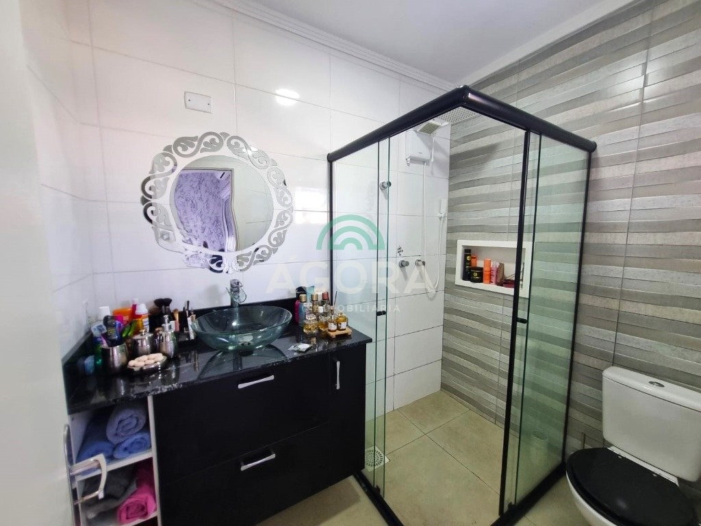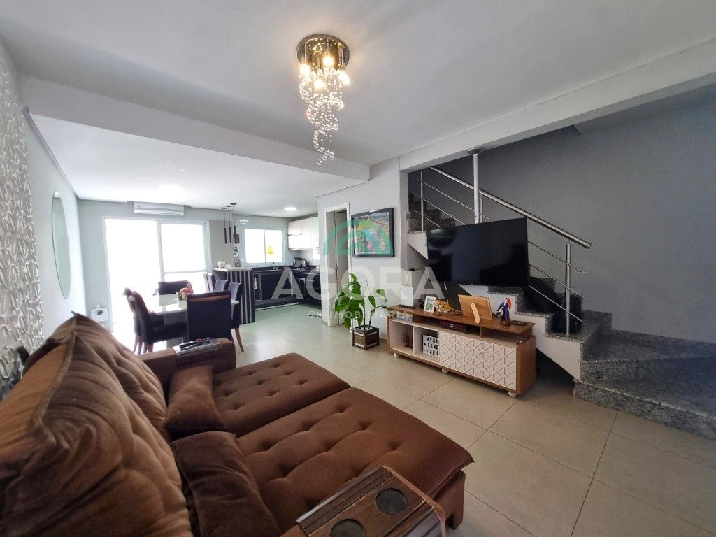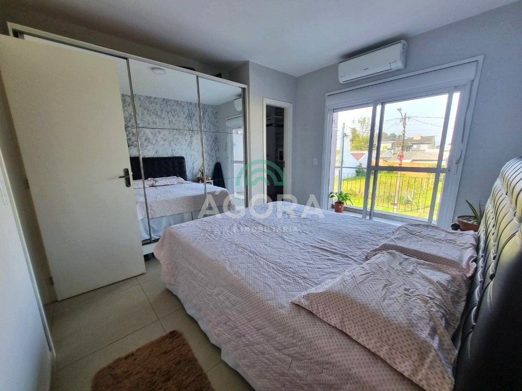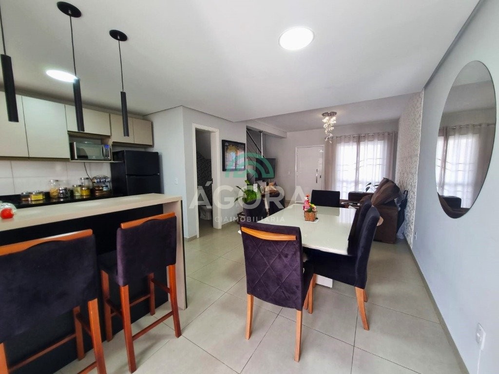 Sobrado de 107,00m² de área construída, com 3 (três) dormitórios, sendo 1 (uma) suíte com sacada, living espaçoso com sala de estar e jantar, lavabo e mais 1 (um)banheiro social espera para água quente, pátio amplo com churrasqueira e 2 (duas) vagas de garagem lado a lado. Portão eletrônico, cerca elétrica, câmeras de segurança e pátio amplo fundos com espaço para piscina. Ficam no imovel, todos móveis planejados, sistema de segurança com três câmeras, cooktop, forno elétrico, espelho redondo na sala de jantar e um ar split da suíte aceita financiamento bancário!