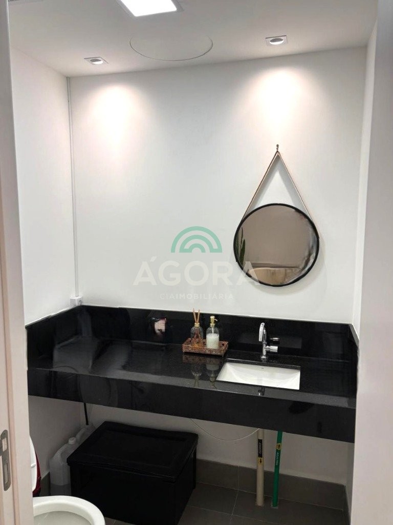 Sala comercial mobiliada, andar alto, com 32,16m² privativos. Ótima localização.