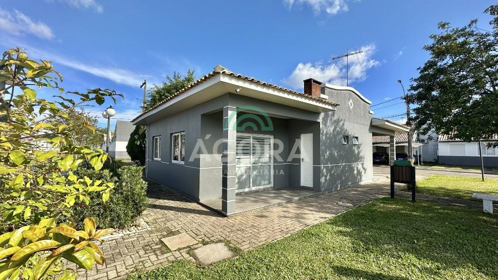 Condomínio com 107 casas salão de festas para 50 pessoas casa de esquina, em condomínio fechado, com 3 (três) dormitórios, sala, cozinha, banheiro, lavanderia e varanda com churrasqueira. 2 (duas) vagas.