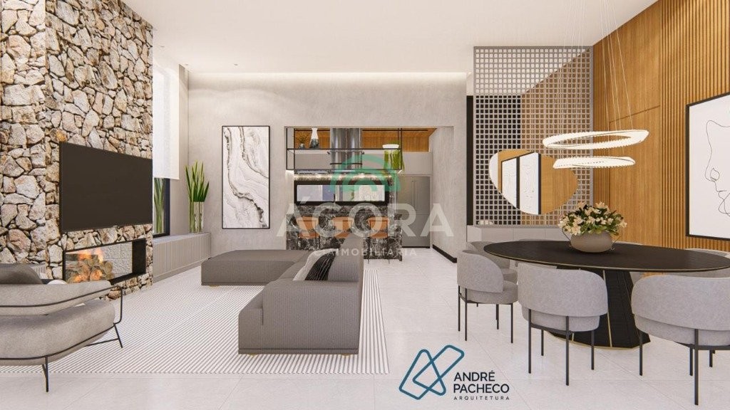 Magnifico sobrado em construção de 260m², com 3 (três) suítes sala de estar, jantar, lareira, closet, espaço gourmet, lavanderia e garagem para 4 (quatro) carros. Pátio com piscina. Sem duvida a casa mais linda e espaçosa do condomínio. Casa exclusiva. Única na quadra. Sem vizinhos dos lados nem nos fundos.