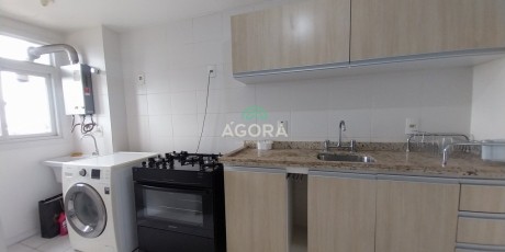Ágora Cia Imobiliária Aluga: Apartamento com 02 (dois) dormitórios com armários e ar condicionado, sala de estar com sacada, cozinha sob medida com churrasqueira, banheiro social, área de serviço, junker e 01 (uma) vaga de garagem fixa coberta. Ótima posição solar e bem localizado. A infraestrutura é completa e voltada para o bem-estar dos moradores, contando com portaria 24 horas, interfone, piscinas adulto e infantil, academia equipada, salão de festas com churrasqueira, espaço gourmet, brinquedoteca, playground, lavanderia coletiva, quadra esportiva, sala de jogos e áreas verdes com quiosques. O condomínio também oferece praticidade pela proximidade a escolas, hospitais como o Nossa Senhora das Graças, parques, comércio variado e fácil acesso à BR-116. Obs: Imóvel fica como nas fotos. Aluguel mais encargos