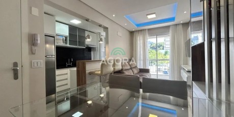 Ágora Cia Imobiliária aluga: Apartamento semi mobiliado, 2 dormitórios, 1 suíte, cozinha, sala de estar, sala de jantar, banheiro social, 2 vagas de garagem cobertas. Ficam apenas os móveis planejados, pode ser negociado a parte outras mobílias. Condomínio com portaria virtual, salão de festas. Excelente localização, próximo ao Carrefour. Aluguel mais encargos