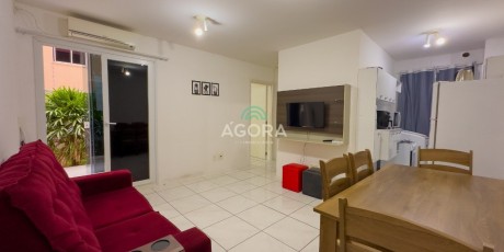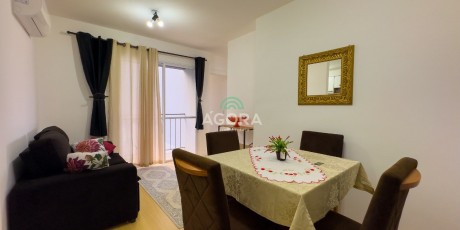 Ágora Cia Imobiliária aluga: Apartamento totalmente mobiliado, 2 dormitórios, ar condicionado, sala, cozinha, área de serviço, sacada com churrasqueira, banheiro social, 1 vaga de garagem. Condomínio com portaria remota, salão de festas, playground, mercado 24hs. Aluguel mais encargos