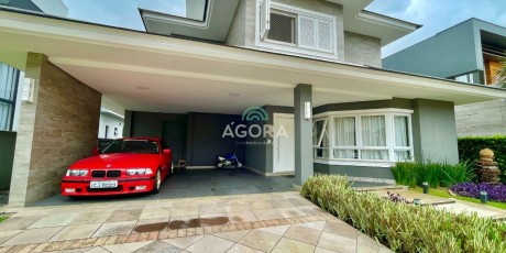 Ágora Cia Imobiliária Aluga: Casa com aproximadamente 260m², composta por três dormitórios: uma suíte master com closet, hidromassagem e ar-condicionado; uma segunda suíte com closet e sacada voltada para os fundos; e um terceiro dormitório. Todos os ambientes contam com esperas para ar-condicionado, garantindo conforto e praticidade. No segundo pavimento, há ainda uma sala de estar que pode ser utilizada como sala de jogos, ideal para momentos de lazer e entretenimento. No pavimento inferior, a cozinha é equipada com móveis sob medida e churrasqueira integrada, além de sistema de aquecimento de água a gás. A sala de estar integra-se a uma sala privada que pode ser utilizada como escritório, e o andar conta também com um banheiro social. A garagem comporta até quatro carros, sendo duas vagas cobertas e duas descobertas, oferecendo praticidade e comodidade para os moradores. Aluguel mais encargos