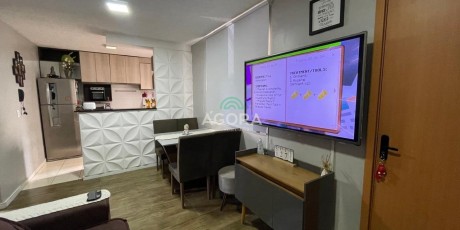 Ágora Cia Imobiliária aluga: Apartamento semi mobiliado, 2 dormitórios, sala de estar, cozinha, área de serviço, banheiro social, 1 vaga de estacionamento. FICAM NO IMÓVEL OS MÓVEIS SOB MEDIDA, somente. Condomínio com portaria 24hs, piscina, salão de festas, espaço kids, playground, quadra poliesportiva, mercado 24hs. Aluguel mais encargos