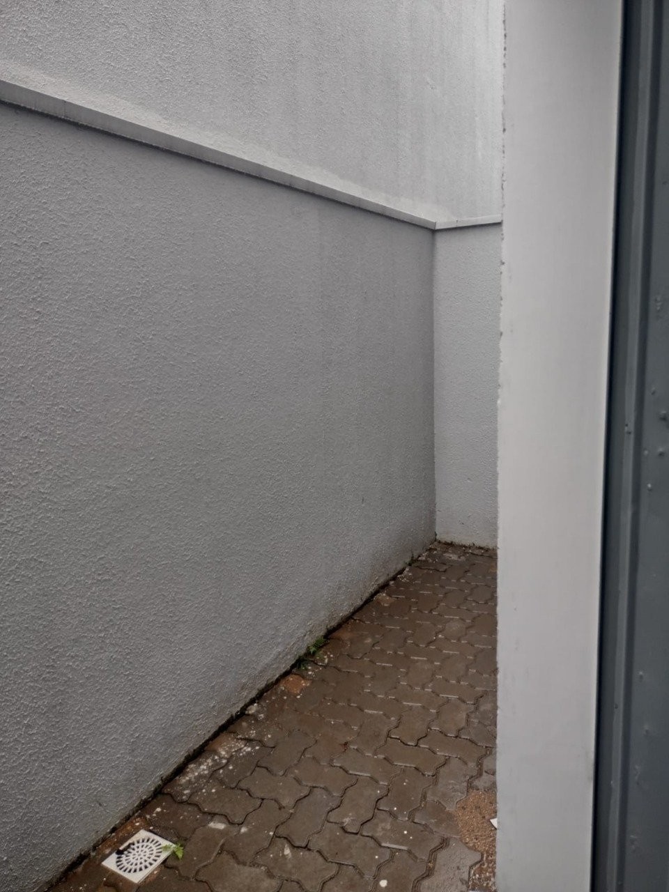 Pavilhão comercial de 110m² com 2 banheiros e pátio externo.