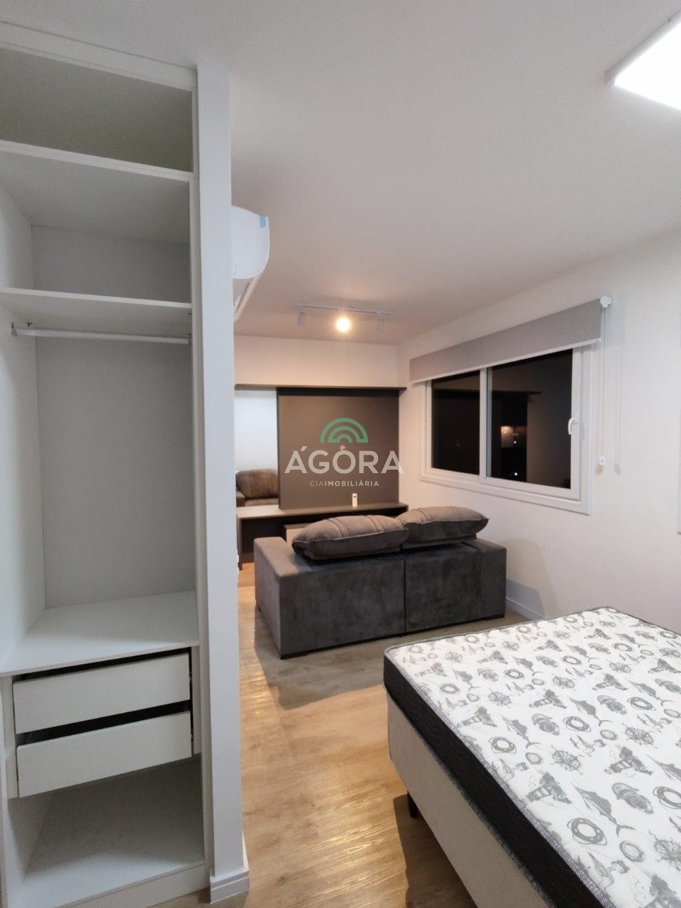 Excelente loft, com 40m², living integrado com cozinha, 1 (um) dormitório e banheiro privativo. Imóvel todo mobiliado e equipado com acabamento moderno. Possui uma vaga. Aluguel mais encargos.
