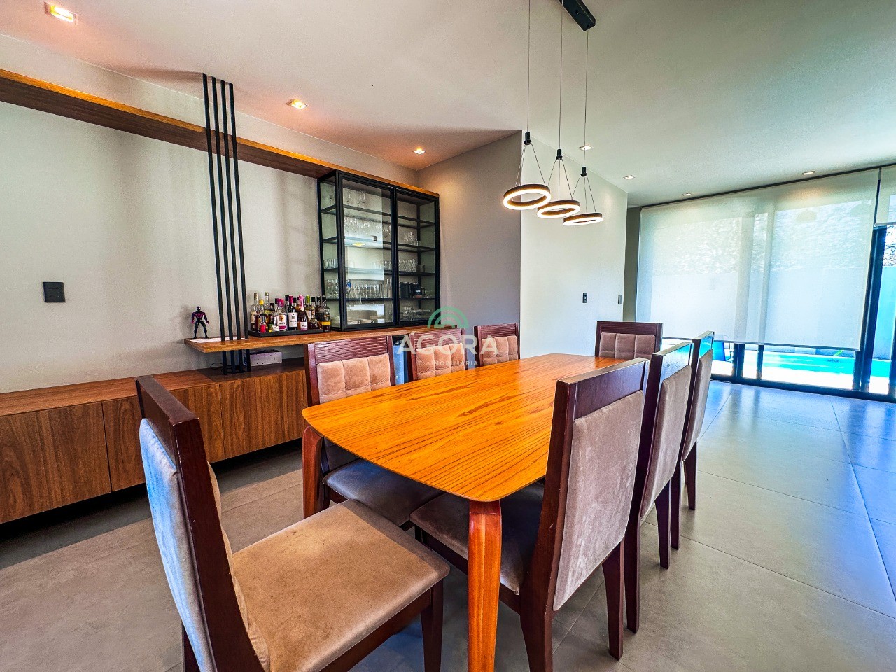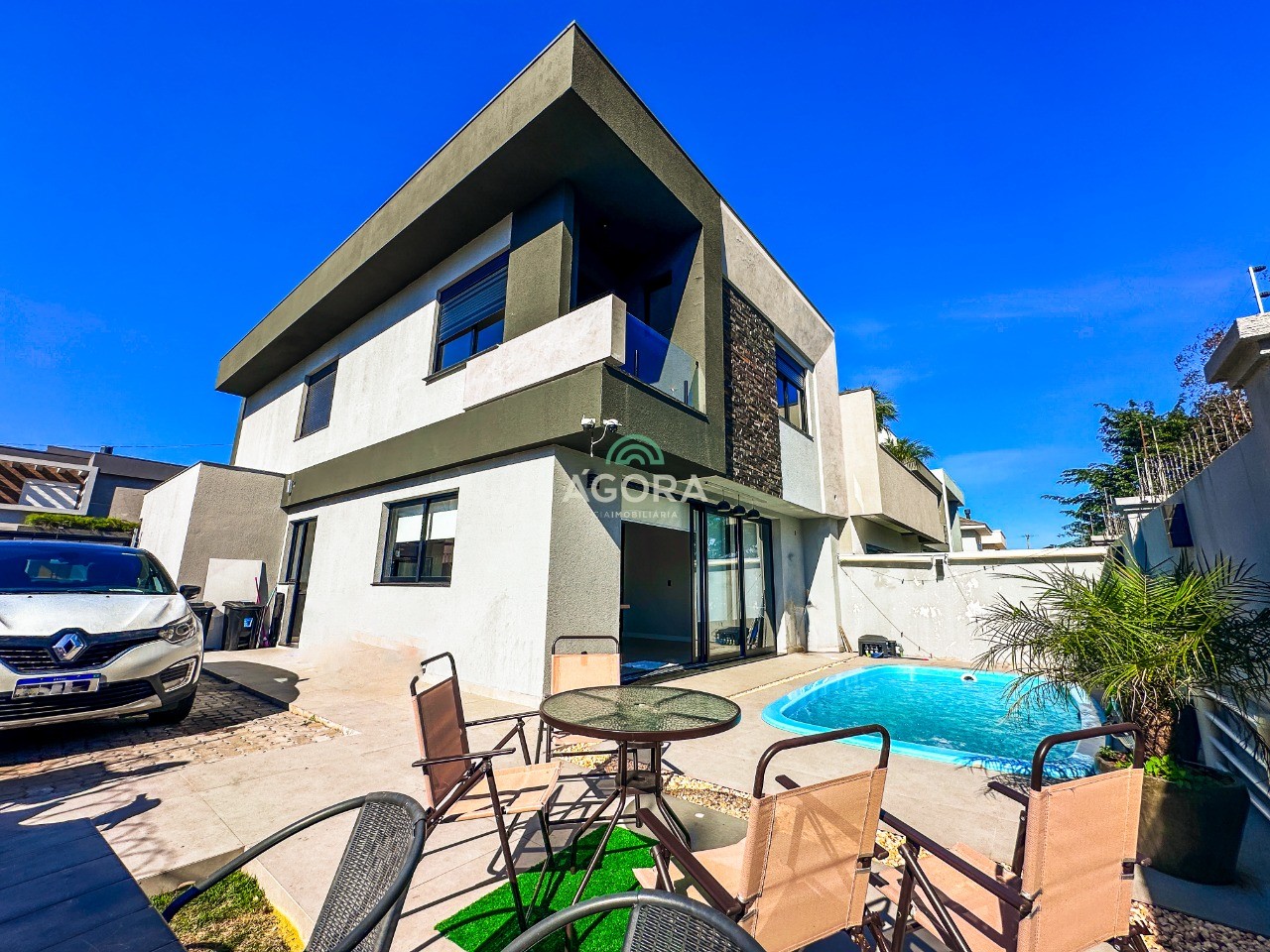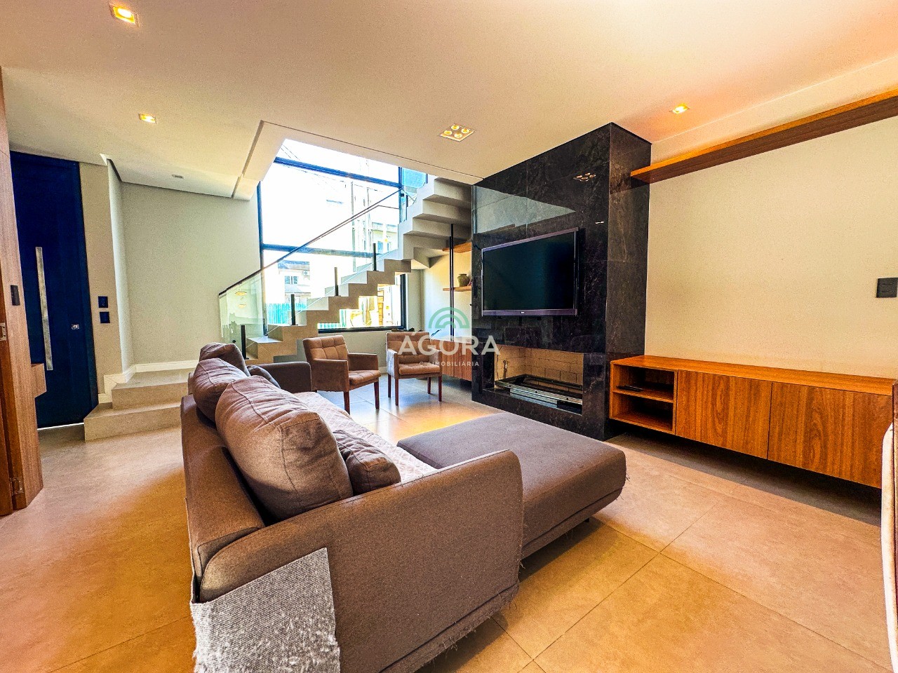 Ágora cia imobiliária aluga: casa mobiliada de alto padrão, com piscina aquecida, energia solar e área externa privativa. Ambientes integrados e acabamentos de qualidade, incluindo escada com guarda-corpo em vidro e lareira a gás. No térreo, conta com ampla sala, cozinha planejada com eletrodomésticos embutidos, churrasqueira, banheiro social, área de serviço e escritório. No segundo pavimento, são 3 dormitórios com ar condicionado, sendo 1 suíte com closet e hidromassagem, 2 dormitórios com banheiro compartilhado, além de 2 varandas. Permanecem no imóvel todos os armários planejados e eletrodomésticos embutidos. Diferenciais: casa inteligente, água aquecida em toda a residência, forro rebaixado, 3 câmeras de segurança, e garagem para até 4 veículos. Obs: contrato mínimo de 30 meses. Aluguel mais encargos.