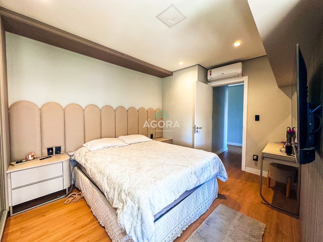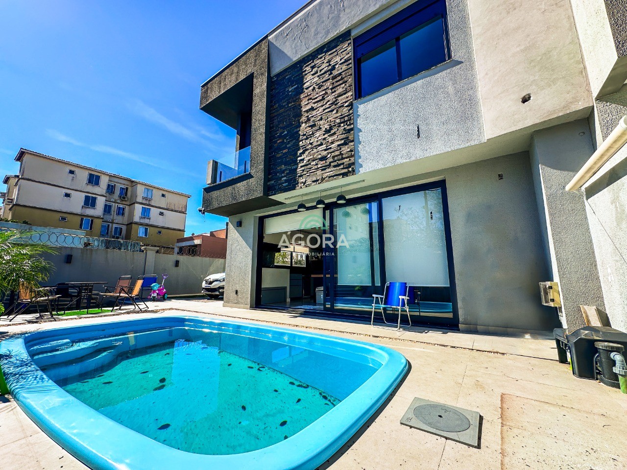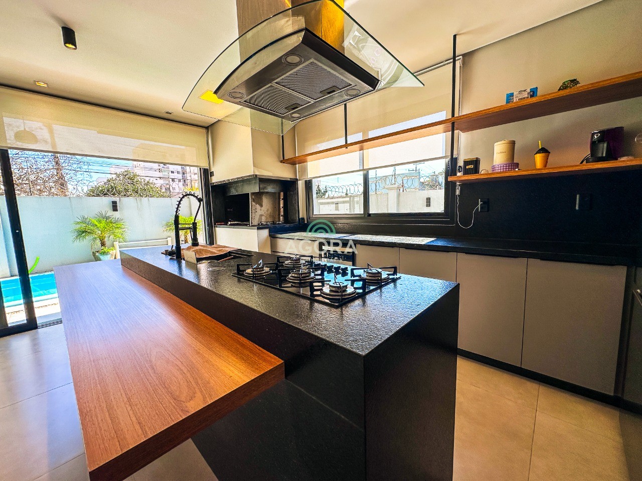 Ágora cia imobiliária aluga: casa mobiliada de alto padrão, com piscina aquecida, energia solar e área externa privativa. Ambientes integrados e acabamentos de qualidade, incluindo escada com guarda-corpo em vidro e lareira a gás. No térreo, conta com ampla sala, cozinha planejada com eletrodomésticos embutidos, churrasqueira, banheiro social, área de serviço e escritório. No segundo pavimento, são 3 dormitórios com ar condicionado, sendo 1 suíte com closet e hidromassagem, 2 dormitórios com banheiro compartilhado, além de 2 varandas. Permanecem no imóvel todos os armários planejados e eletrodomésticos embutidos. Diferenciais: casa inteligente, água aquecida em toda a residência, forro rebaixado, 3 câmeras de segurança, e garagem para até 4 veículos. Obs: contrato mínimo de 30 meses. Aluguel mais encargos.