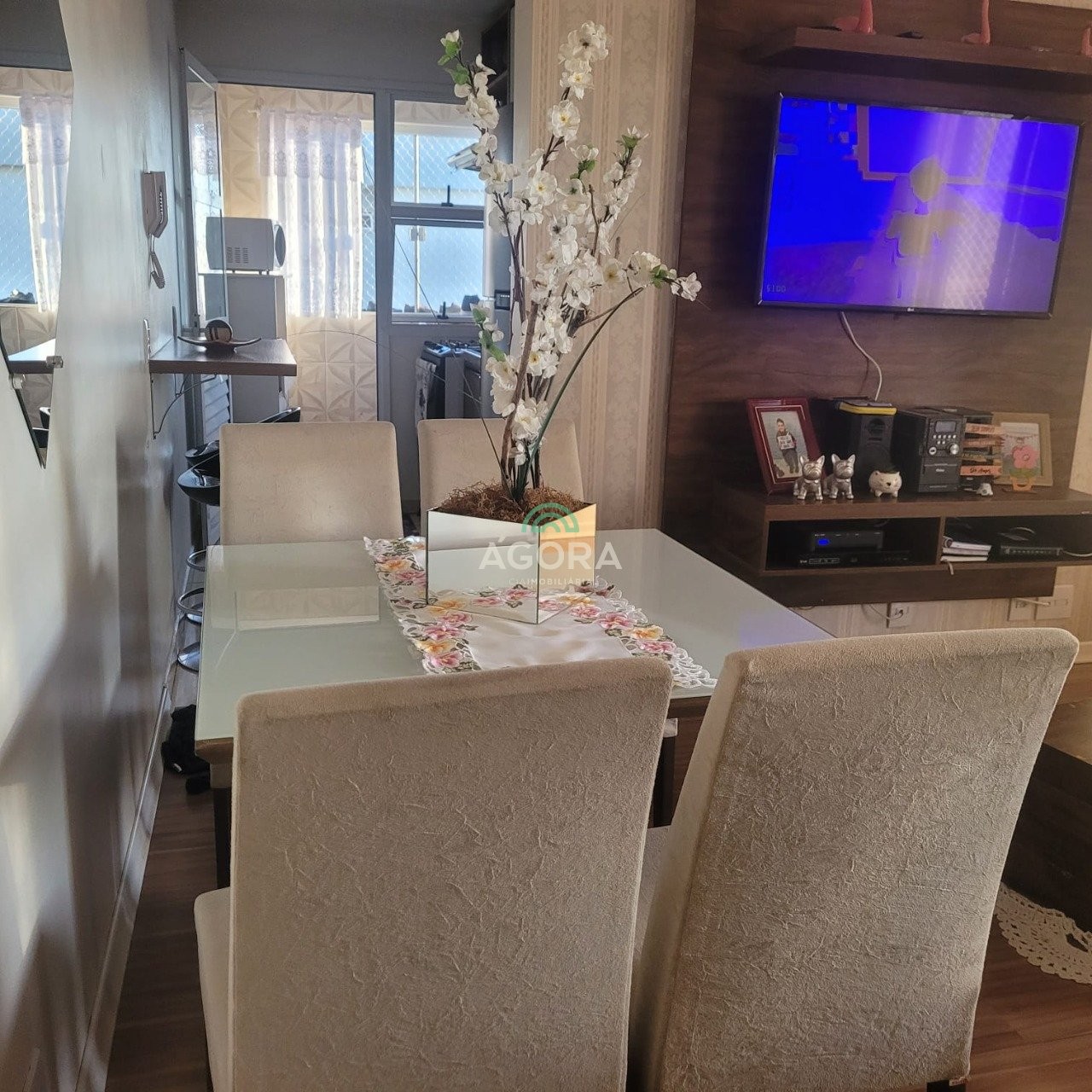 Apartamento semi mobiliado, com 56 m², 02(dois) dormitórios, sacada, banheiro social, cozinha integrada com área de serviço, sala de estar, vaga para 01 carro. Ficam no imovel: a cozinha, painel da sala, painel do quarto, armários do banheiro, aluguel mais encargos