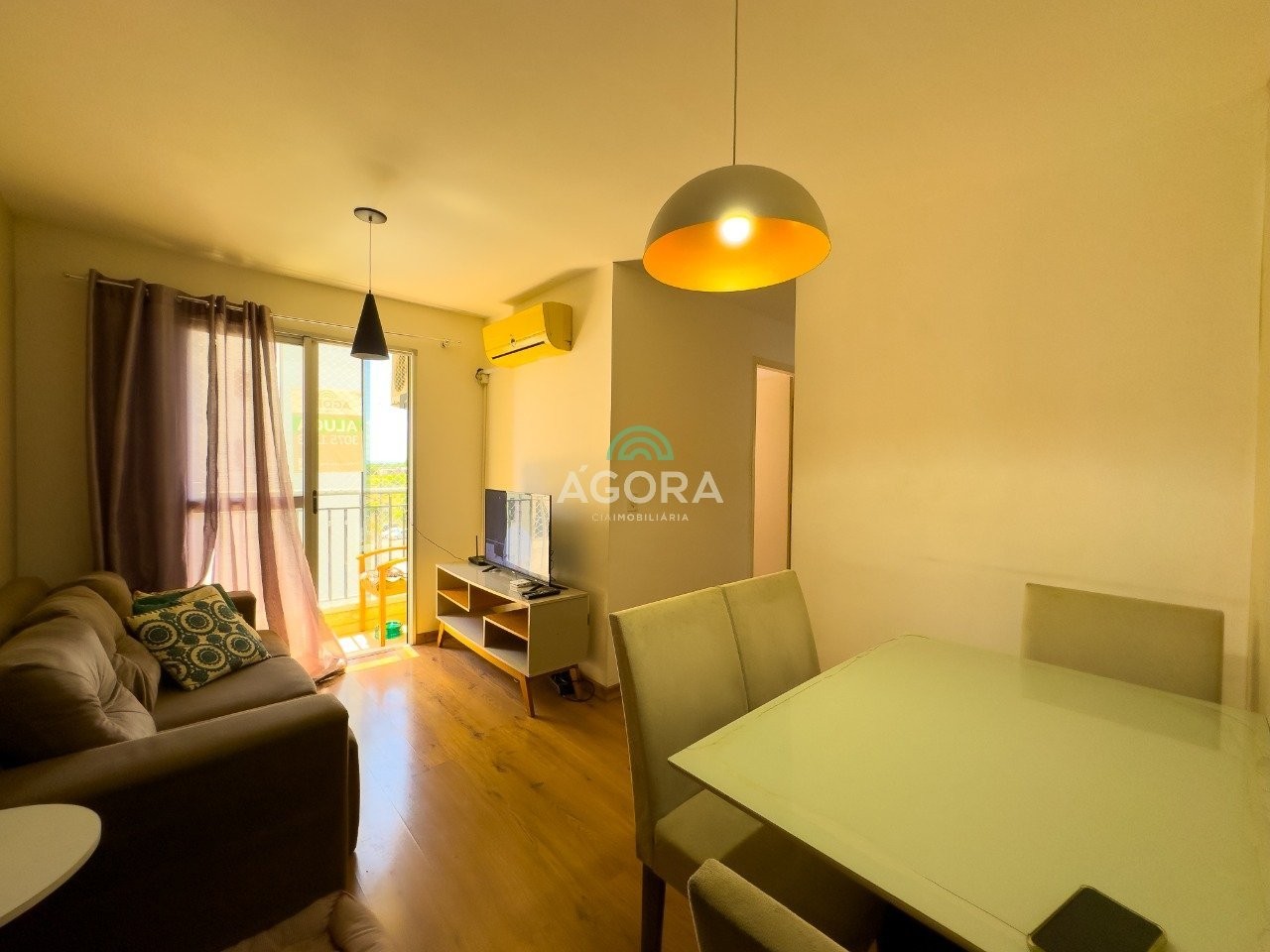 Ágora cia imobiliária aluga: apartamento mobiliado com 3 (três) dormitórios, todos com armários, sendo um deles com cama de solteiro e outro com cama de casal e ventilador de teto. A sala de estar e jantar é integrada, equipada com ar-condicionado, e conta com sacada fechada. A cozinha é completa, a área de serviço é independente e possui máquina de lavar. O imóvel dispõe de 1 (um) banheiro social e 1 (uma) vaga de garagem descoberta. Posição solar: sol da tarde. Aluguel mais encargos.