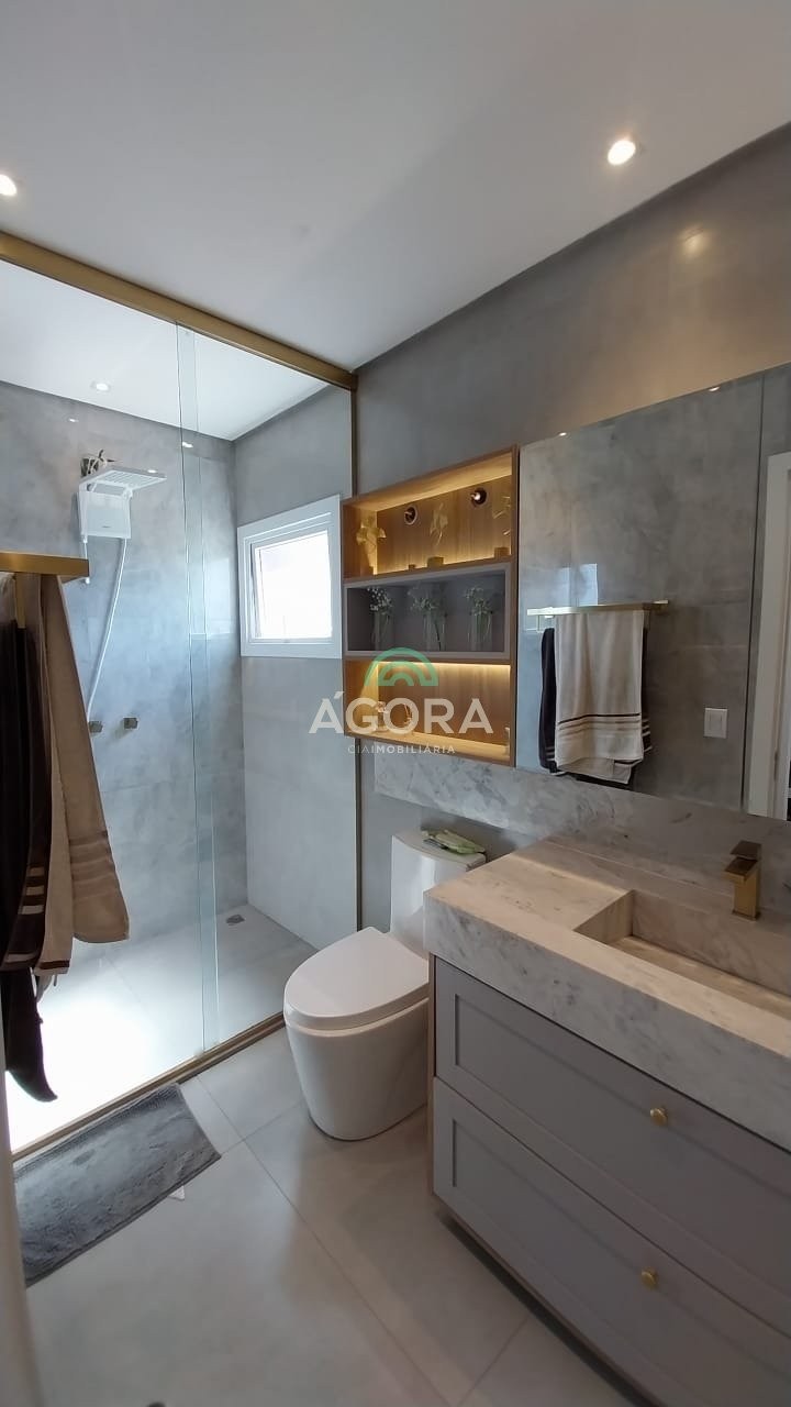 Ágora cia imobiliária aluga sobrado de alto padrão mobiliado: excelente sobrado impecável, com 151 m² de área privativa, distribuídos em ambientes amplos, bem iluminados e com ótima ventilação natural. O imóvel conta com 3 suítes, sendo 1 suíte com sacada e closet. Possui sala de estar com painel planejado, com lareira, lavabo, cozinha planejada, sala de jantar integrada, área de serviço e espaço gourmet com churrasqueira, ideal para momentos de lazer e confraternização. Imóvel moderno, funcional e pronto para morar. Aluguel mais encargos