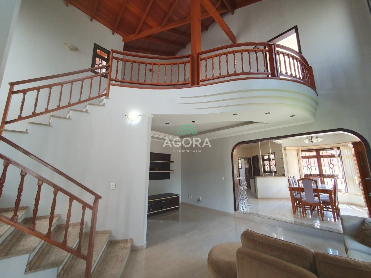 Casa semi mobiliada, 3 dormitórios, sendo 1 suíte máster com closet, banheira de hidromassagem dupla e ampla sacada. Essa suíte tem aberturas para o leste e para o norte, dois amplos dormitórios também com sacadas e um maravilhoso banheiro social, mezanino na parte superior, cozinha estilo americana, sala de jantar, sala de estar ampla com pé direito duplo, lavanderia, lavabo, depósito, garagem para 4 carros grandes/suvs (2 dentro da garagem + 2 entre o portão e a porta da garagem). A garagem é integrada com um avanço que compõe a área gourmet com uma ótima churrasqueira, tendo acesso via porta janela para o gramado. Excelente localização no bairro marechal rondon, localizado a 1,5km do park shopping canoas e fácil acesso a br 116. Aluguel mais encargos