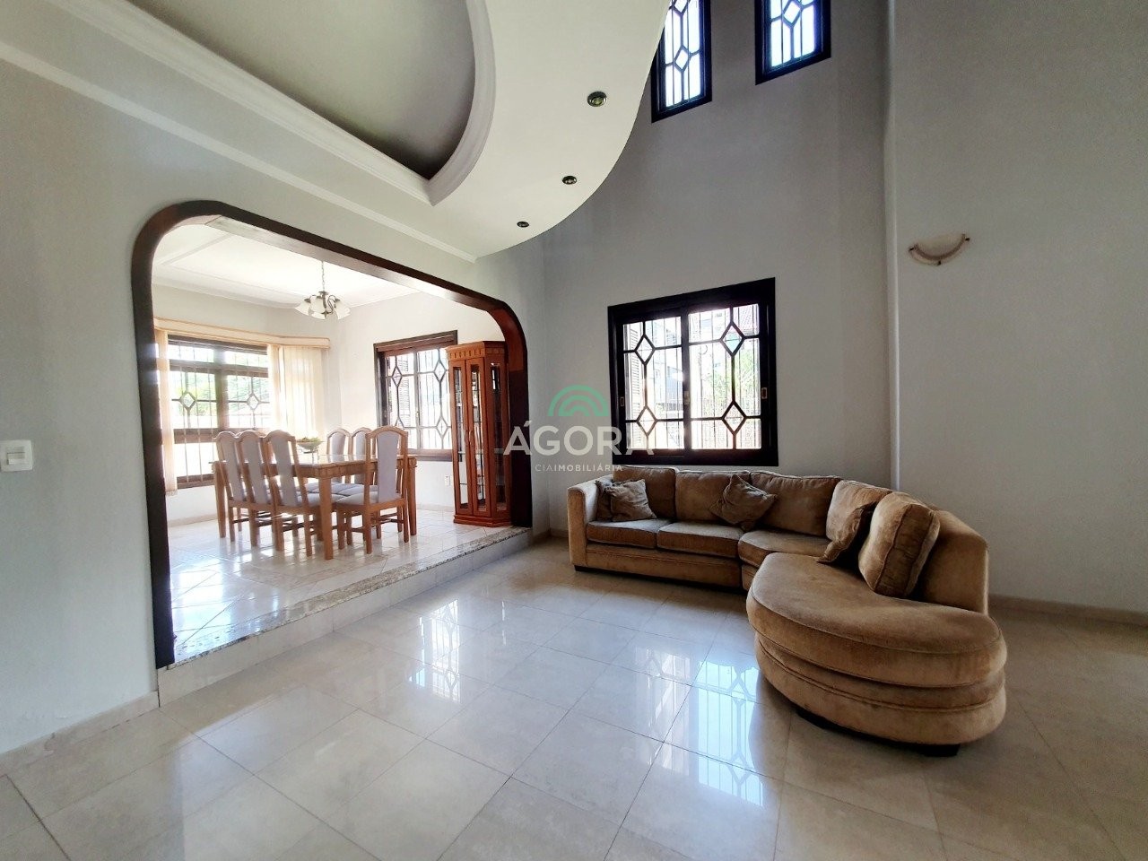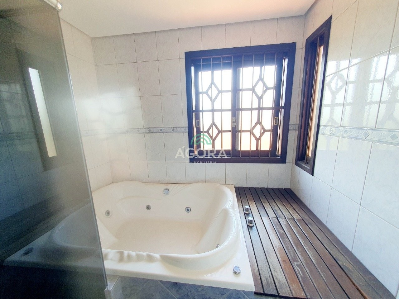 Casa semi mobiliada, 3 dormitórios, sendo 1 suíte máster com closet, banheira de hidromassagem dupla e ampla sacada. Essa suíte tem aberturas para o leste e para o norte, dois amplos dormitórios também com sacadas e um maravilhoso banheiro social, mezanino na parte superior, cozinha estilo americana, sala de jantar, sala de estar ampla com pé direito duplo, lavanderia, lavabo, depósito, garagem para 4 carros grandes/suvs (2 dentro da garagem + 2 entre o portão e a porta da garagem). A garagem é integrada com um avanço que compõe a área gourmet com uma ótima churrasqueira, tendo acesso via porta janela para o gramado. Excelente localização no bairro marechal rondon, localizado a 1,5km do park shopping canoas e fácil acesso a br 116. Aluguel mais encargos