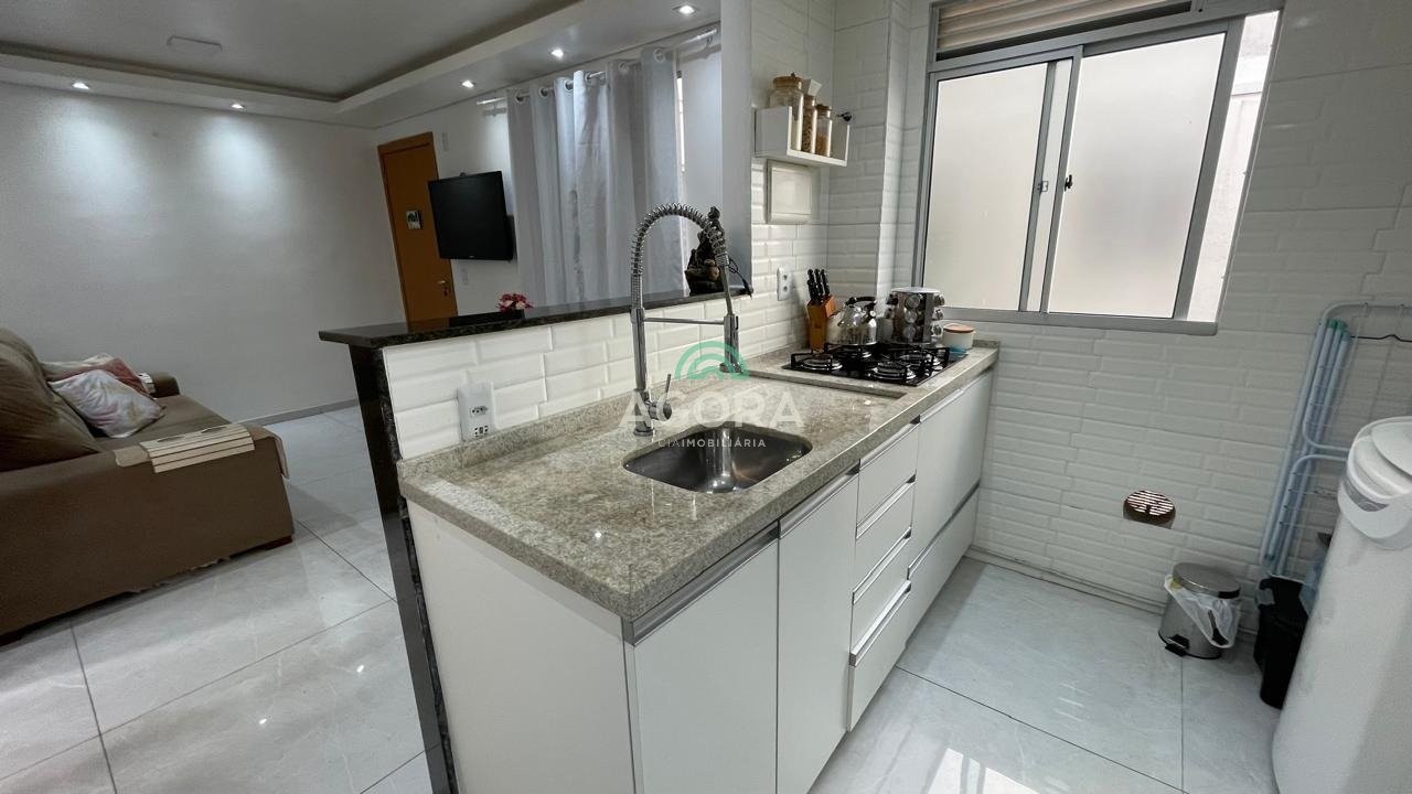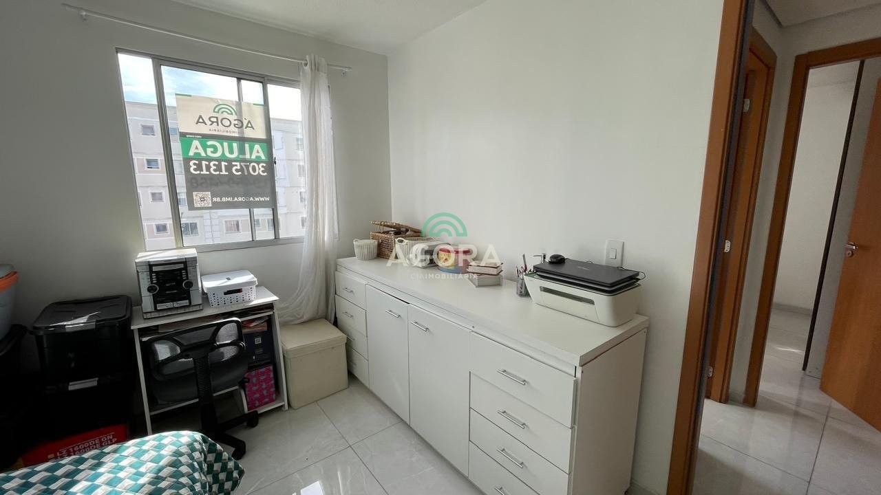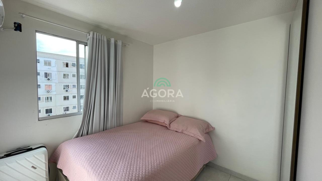 Apartamento mobiliado, com 2 (dois) dormitórios, sala de estar, cozinha, área de serviço, banheiro social, ar condicionado no quarto principal, 1 vaga de estacionamento, 3° andar. Condomínio com portaria 24hs, piscina, salão de festas, playground, quadra poliesportiva, espaço kids. Excelente localização, distante 1,2km da estação do transurb. Aluguel mais encargos
