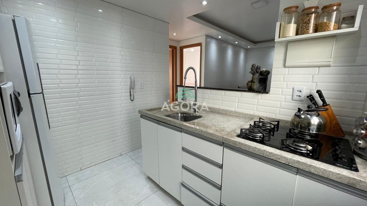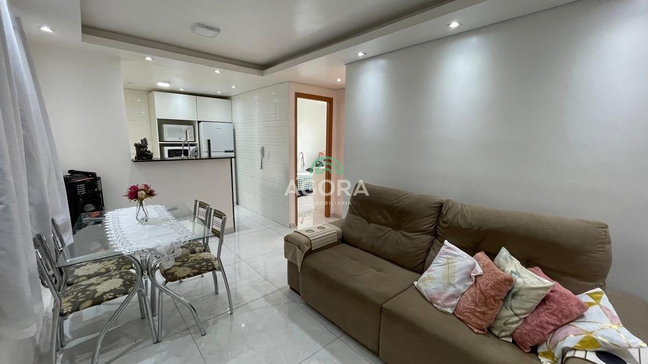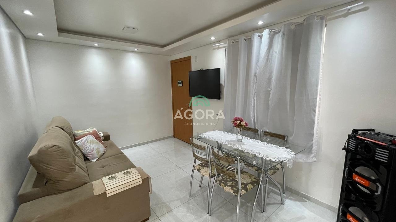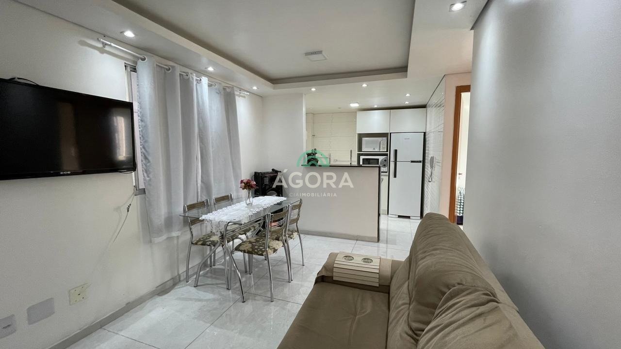 Apartamento mobiliado, com 2 (dois) dormitórios, sala de estar, cozinha, área de serviço, banheiro social, ar condicionado no quarto principal, 1 vaga de estacionamento, 3° andar. Condomínio com portaria 24hs, piscina, salão de festas, playground, quadra poliesportiva, espaço kids. Excelente localização, distante 1,2km da estação do transurb. Aluguel mais encargos