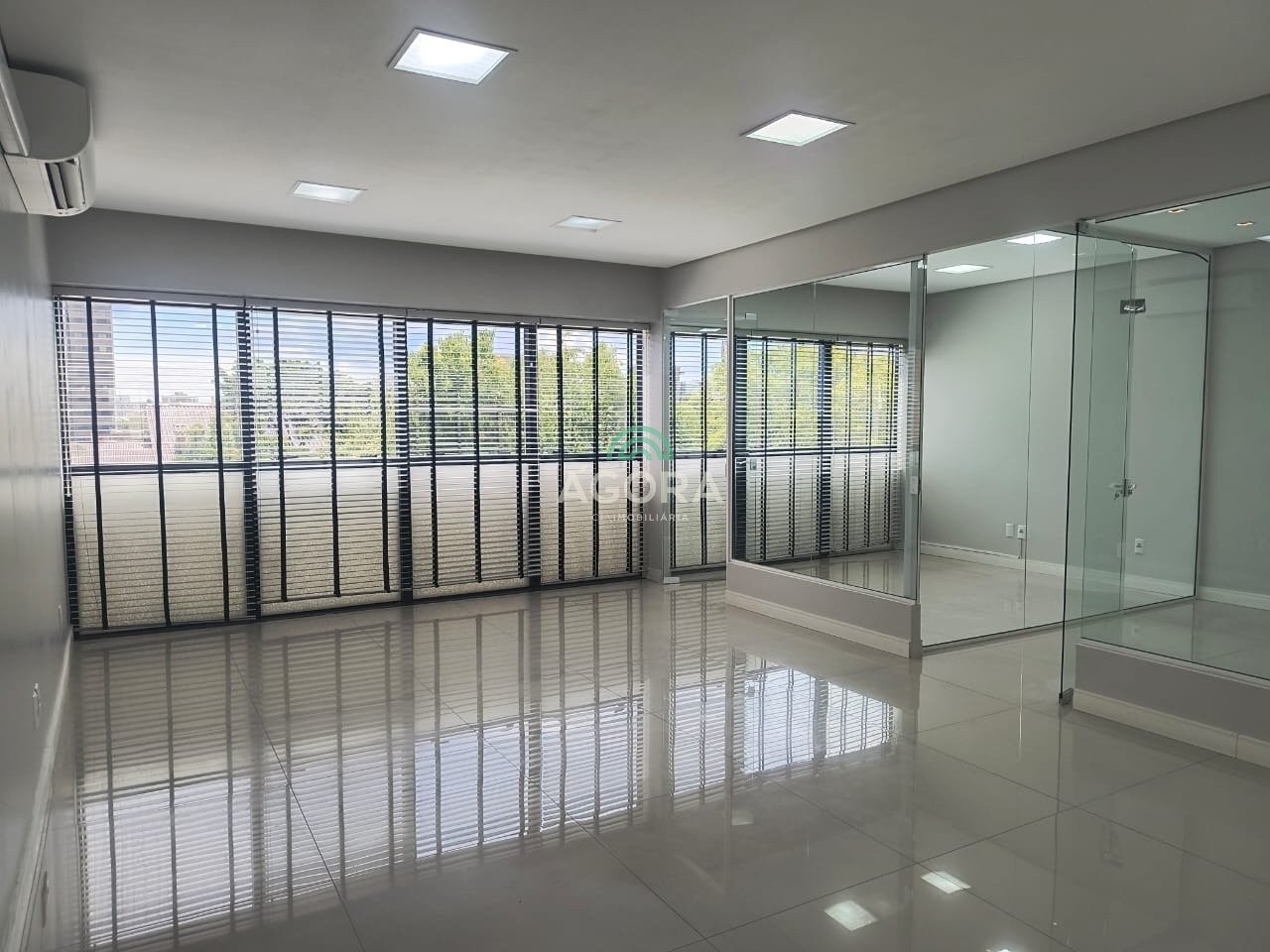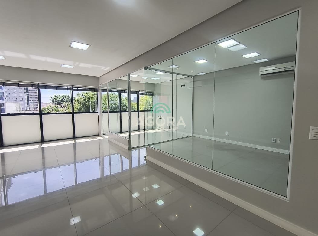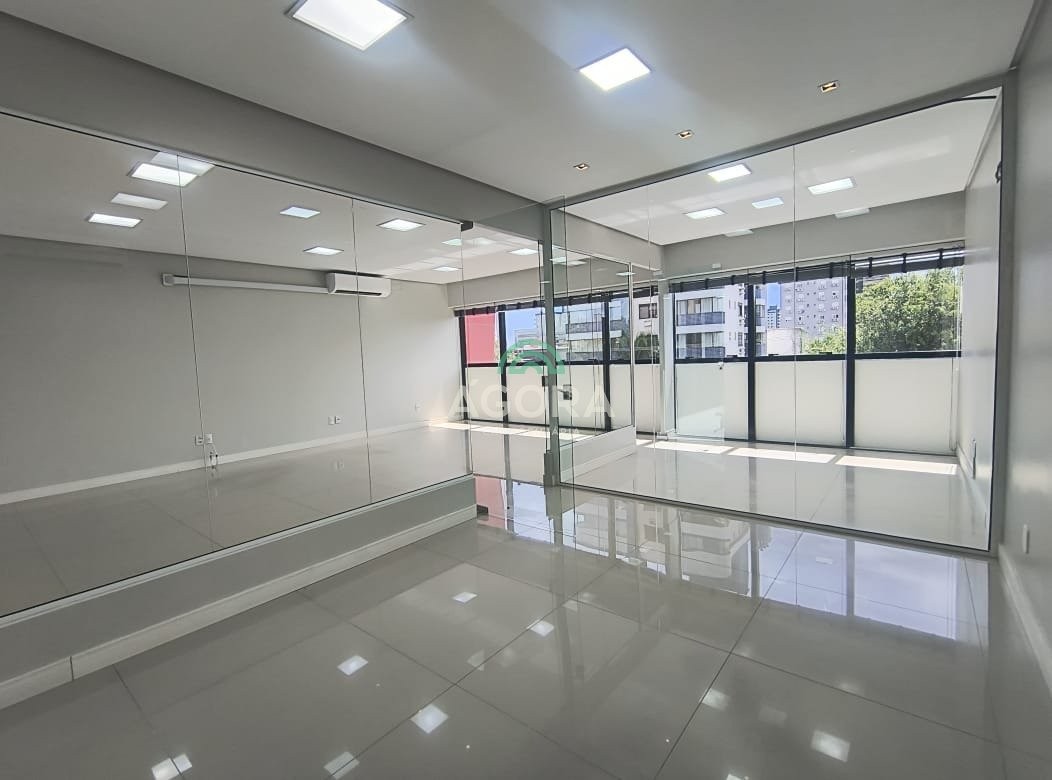 Ágora cia imobiliária aluga: excelente sala comercial, piso porcelanato, com 3 (três) aparelhos ar split de 16000 btus, divisórias de sala com vidro temperado removíveis caso tenha interesse em espaço maior, persianas, cozinha tipo copa sob medida, banheiros completos, alarme, fechadura eletrônica, elevador. Aluguel até o vencimento mais encargos