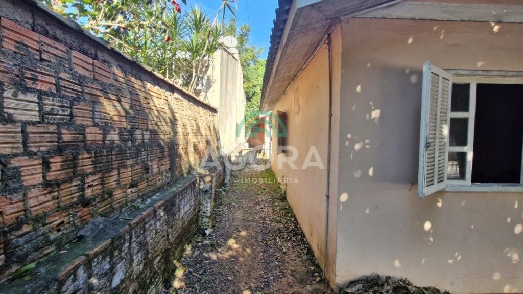 Terreno medindo 318m², amplo pátio com 2 (duas) casas. A casa da frente conta com 2 (dois) dormitórios, sala, cozinha, 1 (um) banheiro, lavanderia e estrutura para 2º (segundo) piso. Já a casa dos fundos conta com 1(um) dormitório, sala, cozinha, lavanderia e 1 (um) banheiro. Rua asfaltada, próximo a escolas, mercados, transporte coletivo; aceita imóvel com menor valor.
