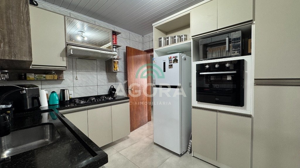 Casa de 3(três) dormitórios, sendo 1(uma) suíte, sala de estar com lareira, cozinha, espaço gourmet com churrasqueira e um pátio de aproximadamente 30m². Localizada no bairro central park.
