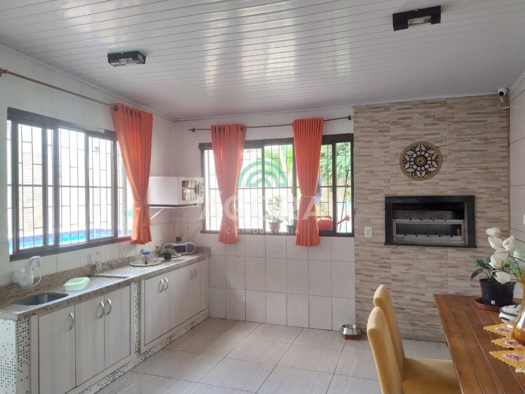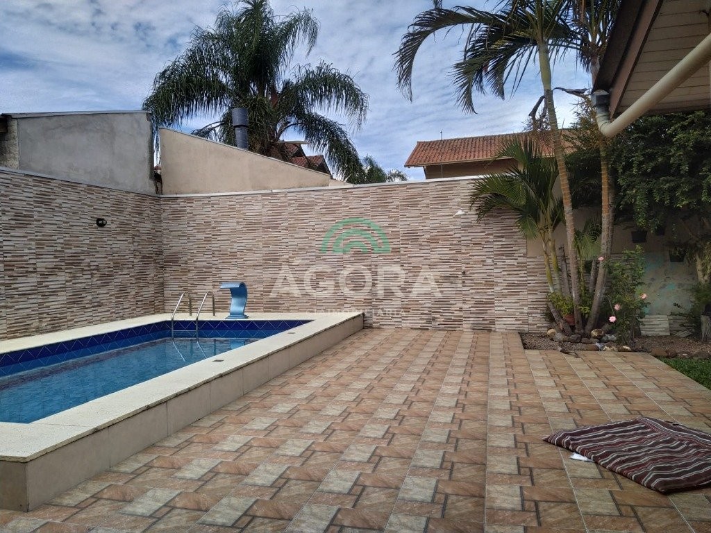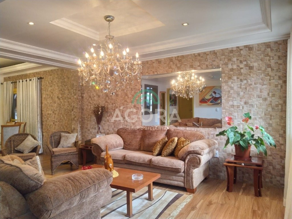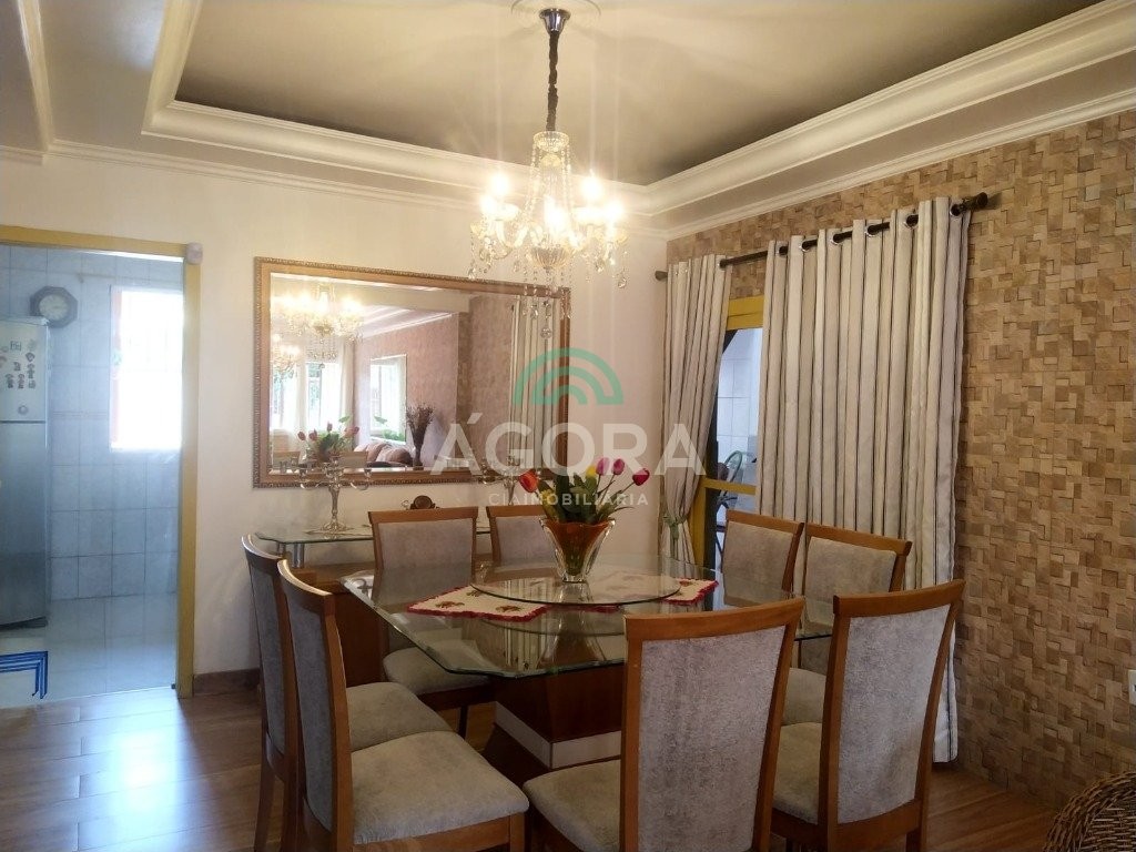 Sobrado com 3(três) dormitórios, sendo 2(duas) suítes, uma delas com banheira de hidromassagem e 1(um) dormitório no térreo, sala de estar com lareira, sala de jantar, cozinha planejada, banheiro social, lavabo, área de serviço, espaço gourmet com churrasqueira rotativa, pátio com piscina, vagas cobertas para 3(três) veículos e 1(uma) vaga descoberta. Anexado ao sobrado, um pequeno apartamento com acesso interno, sendo 1(um) dormitório, banheiro social, sala de estar, sala de jantar e cozinha integradas.