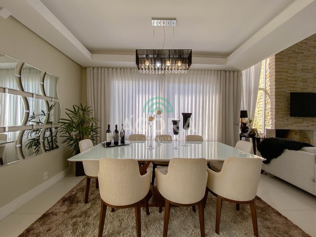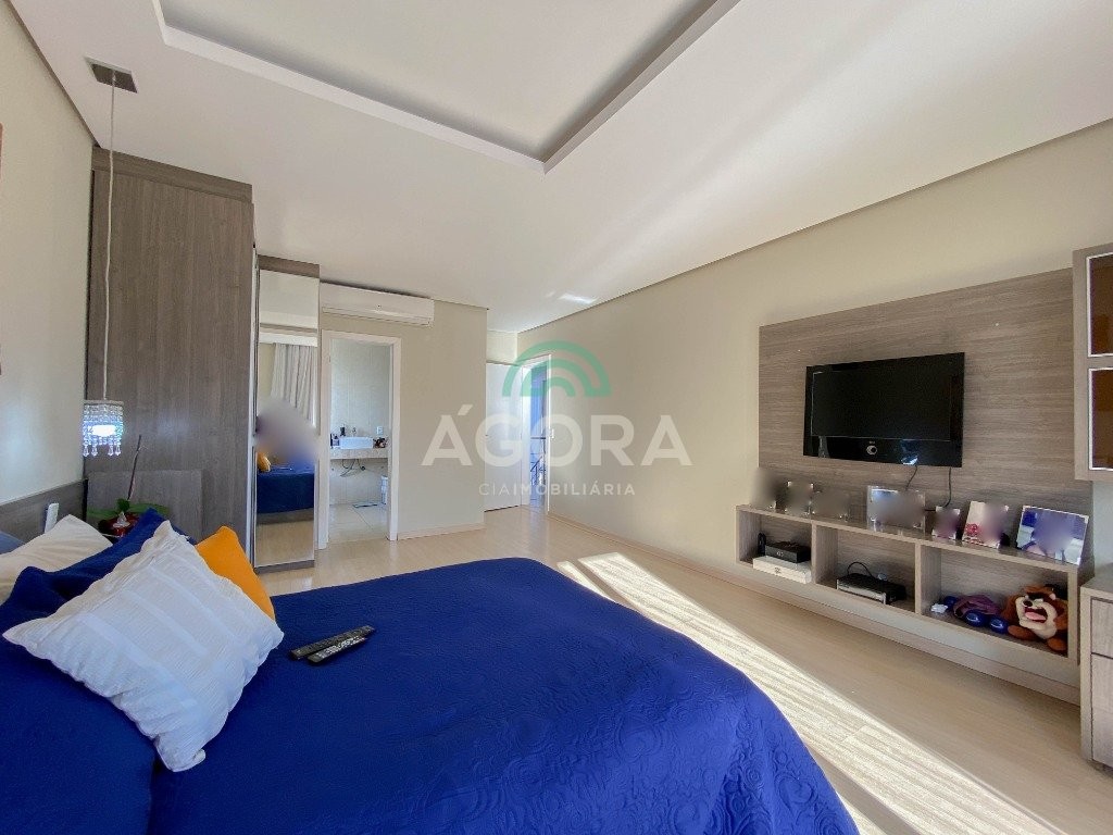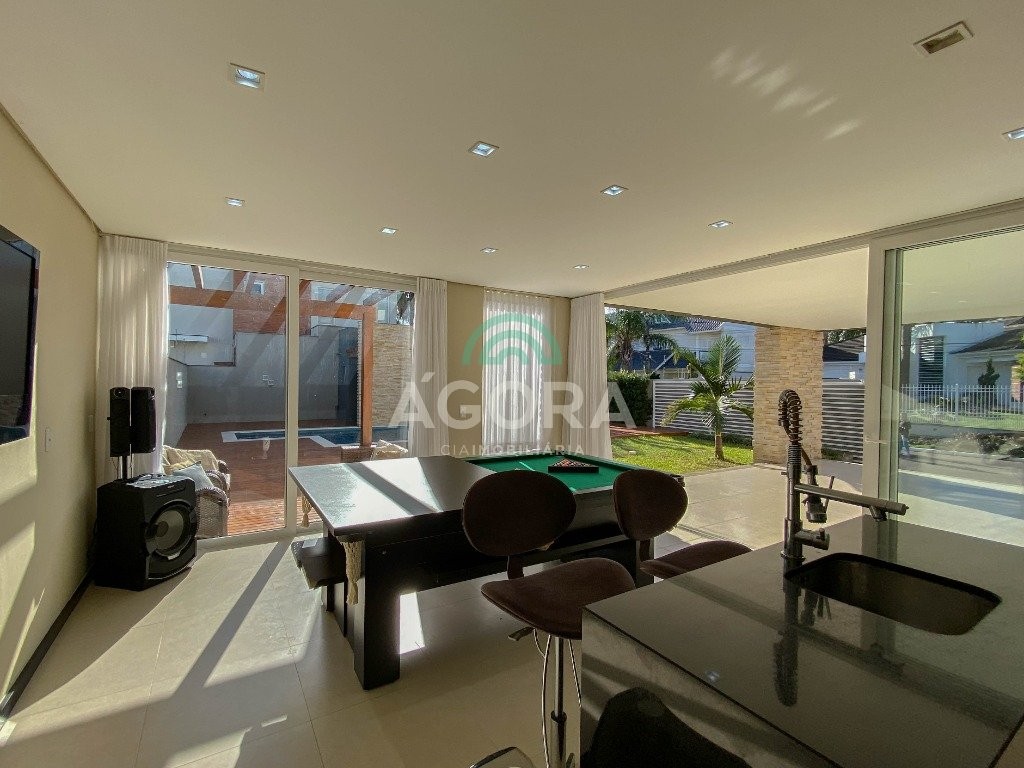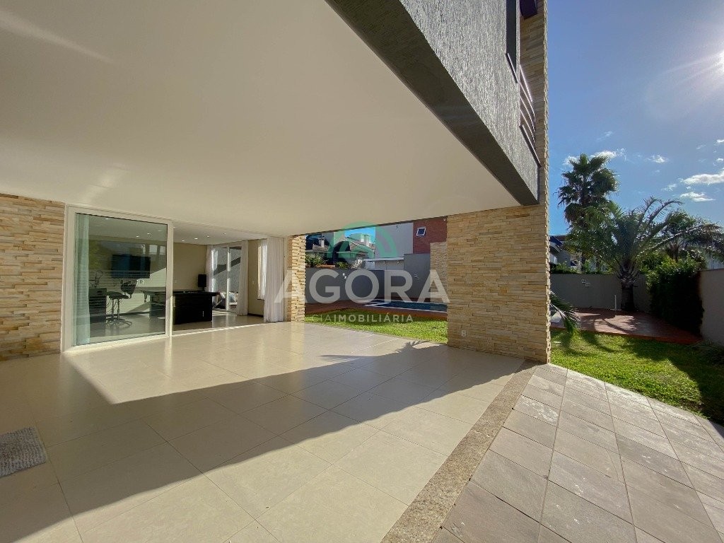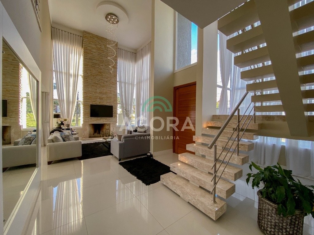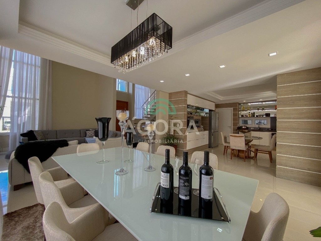 Sobrado com 300m² privativos, 4 quatro) dormitórios, sendo 3 (três) suítes com sacada, 2 (duas) suítes master com banheira de hidromassagem, escritório, mezanino com varanda, sala de estar com pé direito duplo e lareira, cozinha, lavabo, sala de jantar, espaço gourmet com mesa de bilhar que dá acesso a um lindo pátio com deck e piscina medindo 4mx10m, anexo a piscina há mais 1 (um) banheiro e 1 (um) depósito, vagas para 4 (quatro) carros.
