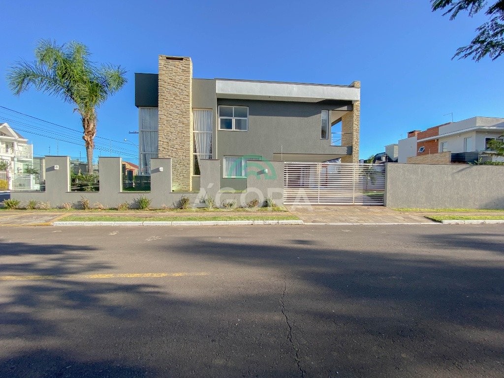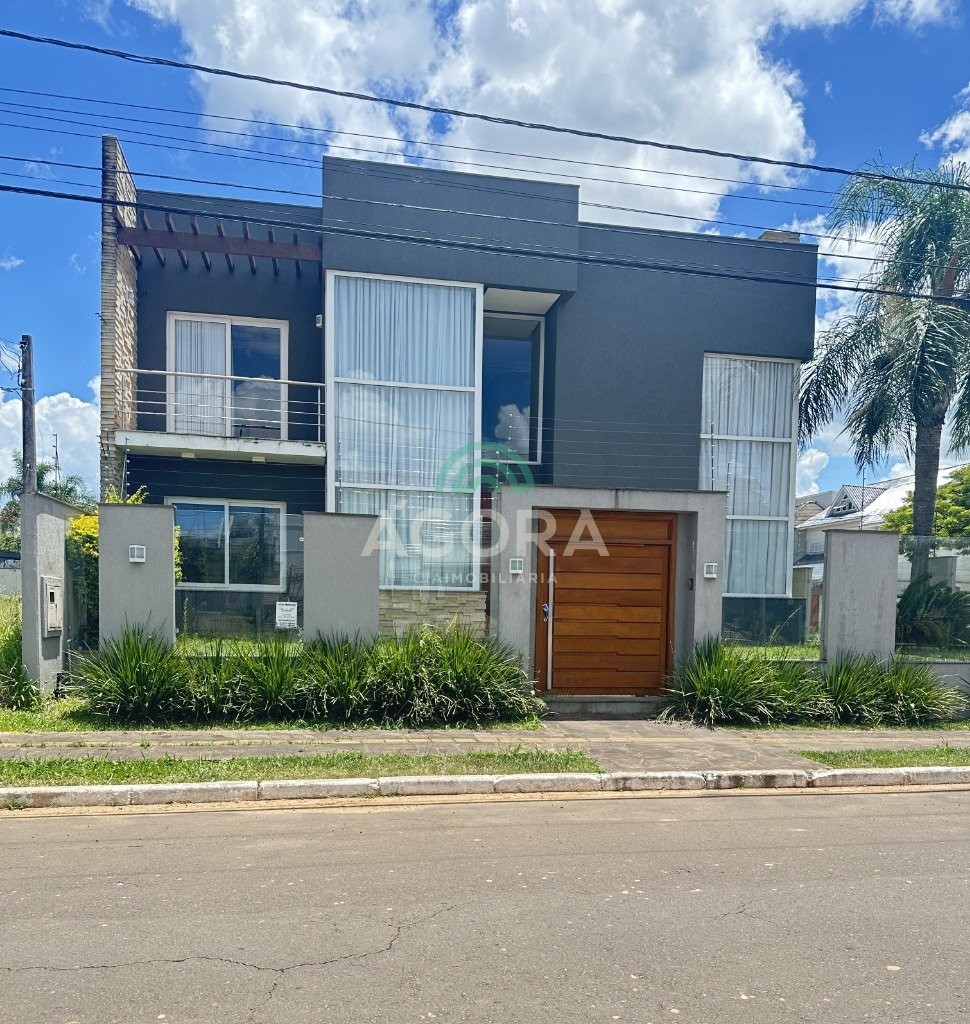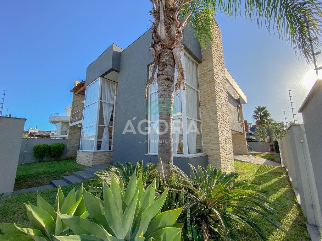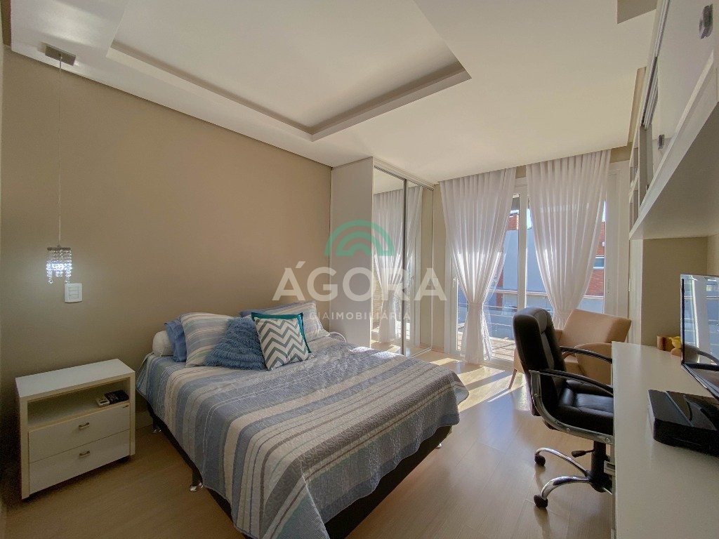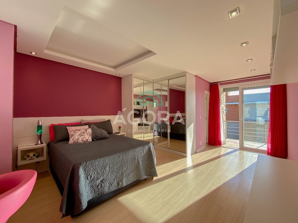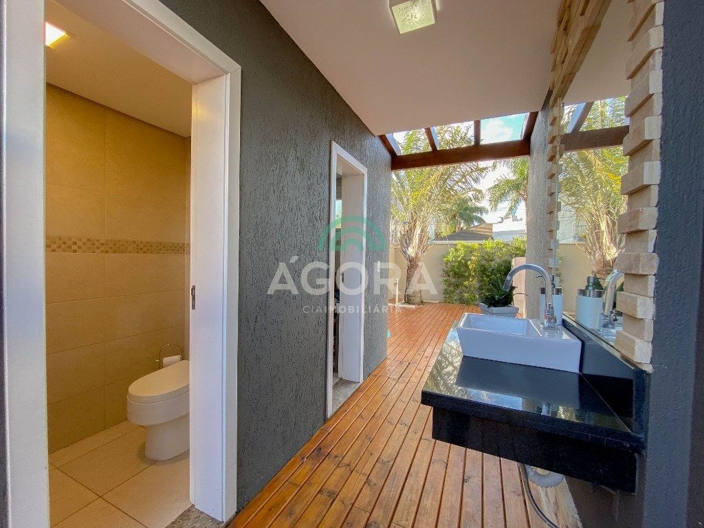 Sobrado com 300m² privativos, 4 quatro) dormitórios, sendo 3 (três) suítes com sacada, 2 (duas) suítes master com banheira de hidromassagem, escritório, mezanino com varanda, sala de estar com pé direito duplo e lareira, cozinha, lavabo, sala de jantar, espaço gourmet com mesa de bilhar que dá acesso a um lindo pátio com deck e piscina medindo 4mx10m, anexo a piscina há mais 1 (um) banheiro e 1 (um) depósito, vagas para 4 (quatro) carros.