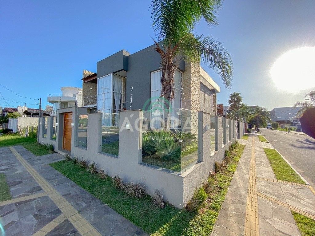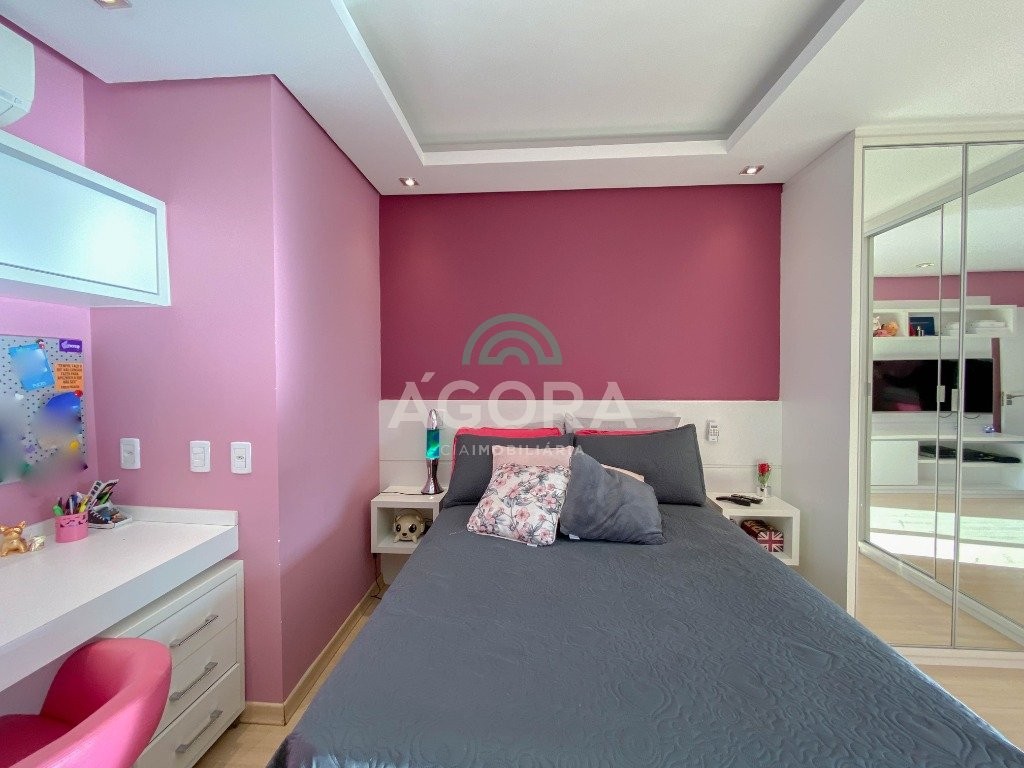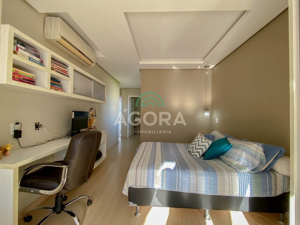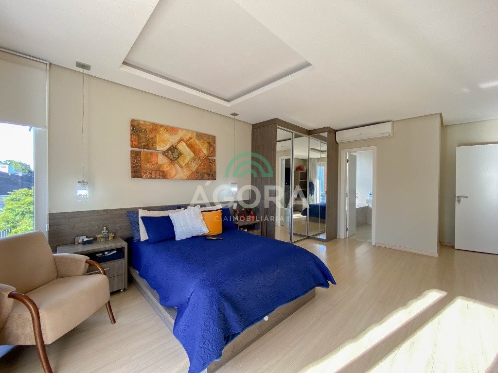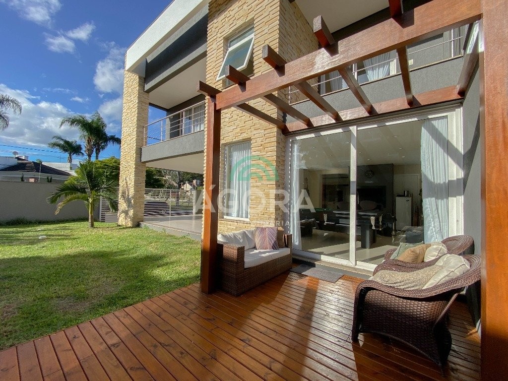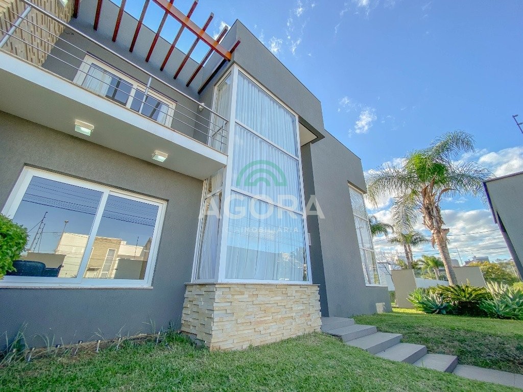 Sobrado com 300m² privativos, 4 quatro) dormitórios, sendo 3 (três) suítes com sacada, 2 (duas) suítes master com banheira de hidromassagem, escritório, mezanino com varanda, sala de estar com pé direito duplo e lareira, cozinha, lavabo, sala de jantar, espaço gourmet com mesa de bilhar que dá acesso a um lindo pátio com deck e piscina medindo 4mx10m, anexo a piscina há mais 1 (um) banheiro e 1 (um) depósito, vagas para 4 (quatro) carros.