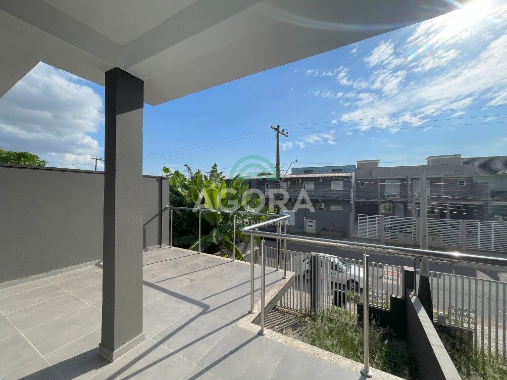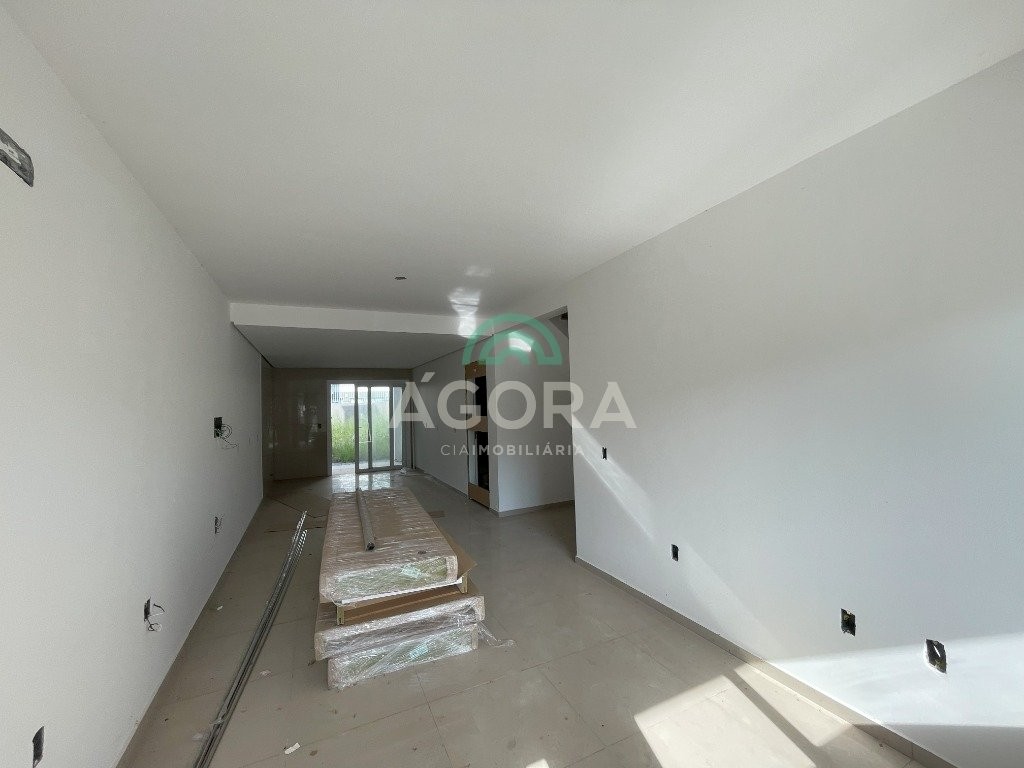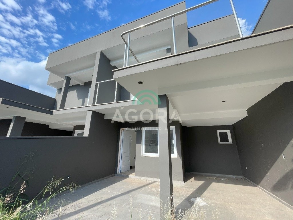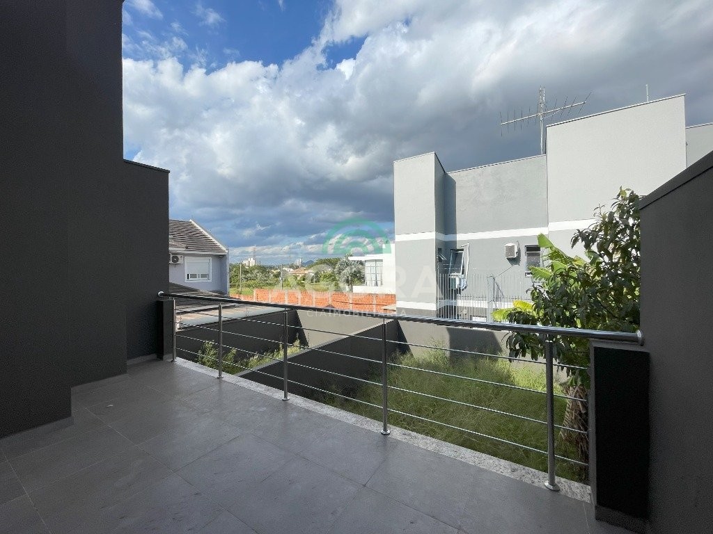 Sobrado de 136m² privativos, sendo 2 (duas) suítes, sala de estar, jantar, cozinha, área de serviço, pátio nos fundos com churrasqueira. Possui vaga para 2 (dois) carros. Nos dormitórios possui sacada, escada em mármore travertino, corrimão em aço inox. Próximo á faculdade ulbra, avenida farroupilha e a todos os comércios centrais. Aceita financiamento e fgts.
