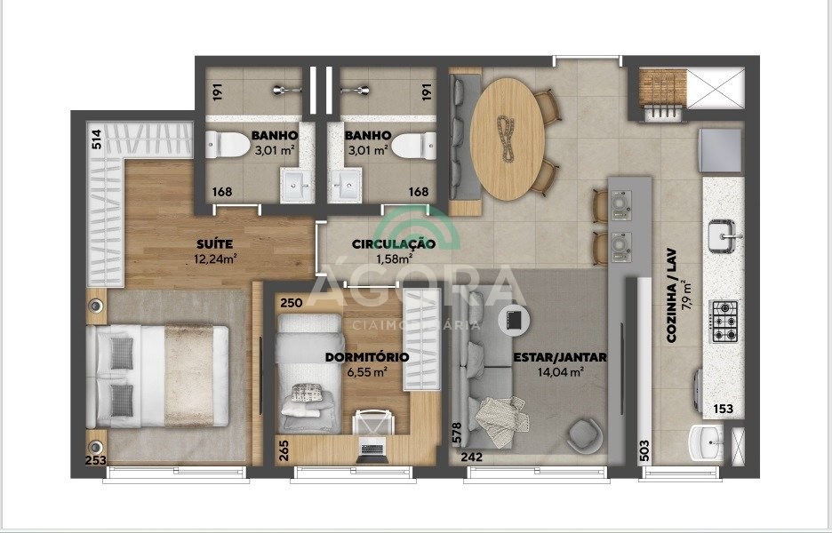 Ágora cia imobiliária vende: " um lugar extraordinário para criar momentos inesquecíveis em família! Esse condomínio É um verdadeiro oásis, repleto de comodidades e opções de lazer para todos os gostos. No térreo, você encontrará tudo o que precisa: desde a segurança da guarita e o acolhimento no hall de entrada até espaços exclusivos como o amplo coworking de 34m², perfeito para trabalhar com tranquilidade, acompanhado por salas de reunião individuais para suas necessidades profissionais. As maravilhas não param por aí. Imagine-se desfrutando de dias ensolarados na nossa piscina com raia de 25m, enquanto as crianças se divertem na piscina infantil. O ambiente externo É perfeito para atividades esportivas, com quadras de beach tênis e esportiva À disposição. Para aqueles momentos de relaxamento, oferecemos um deck seco, um espaço beauty care de 14m². E até um mini market inteligente, trazendo praticidade ao seu dia a dia. Para as famílias com pets, o pet place É um verdadeiro paraíso para os bichinhos, com 40m² cercados, bebedouro e lixeira. Área fitness foi cuidadosamente projetada, com 111m² e equipada com consultoria especializada para atender todas as suas necessidades de exercícios. A diversão para os pequenos É garantida na brinquedoteca de 59m² e no playground de 128m². Enquanto os adolescentes desfrutam do espaço teen interno e externo, com opções como tv e espaços para atividades recreativas. E para receber seus convidados, temos um amplo salão de festas de 93m², perfeito para celebrações, além de um espaço gourmet fechado com capacidade para 15 pessoas e dois espaços gourmet externos para eventos memoráveis. Nossas opções de planta variam de 56m² a 87m², com plantas de 2 e 3 dormitórios, com 1 suíte e até garden com espaços de até 142m² privativos, proporcionando versatilidade e conforto para sua escolha. Venha fazer parte desse estilo de vida Único e desfrute do melhor em conforto, lazer e bem-estar! " fase 1 - 03/26 fase 2 - 05/26 fase 3 - 03/27 unidade referência 201 torre 1