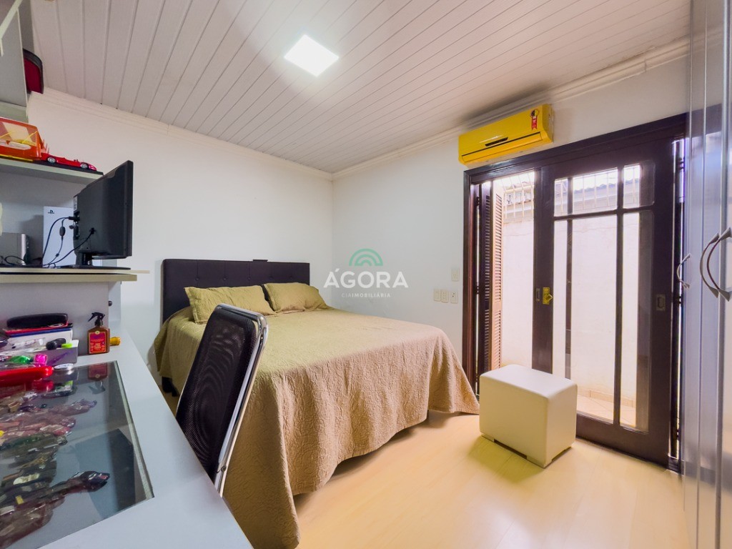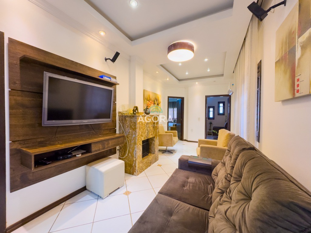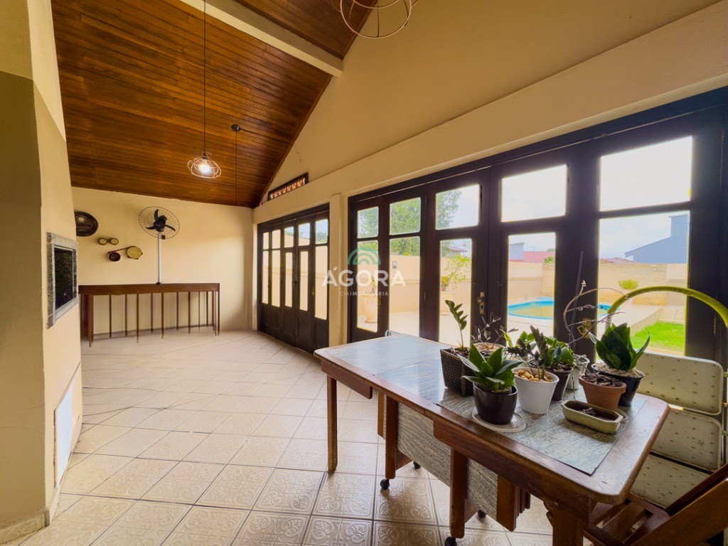 Casa térrea de 204m² privativos, com 3 (três) dormitórios, sendo 1 (um) suíte, sala de estar com lareira, sala de jantar e cozinha integradas, hall de entrada, 2 (dois) banheiros sociais, área de serviço, espaço gourmet completo com churrasqueira, garagem para vagas para 6 (seis) veículos, sendo 2 (duas) descobertas, amplo pátio em frente e aos fundos com piscina e canil. Permanece no imóvel todos os móveis planejados, aparelhos de ar condicionado, lustres e cortinas. Localizado em um excelente região com fácil acesso aos principais pontos da cidade e comércios locais. Rua tranquila e segura.