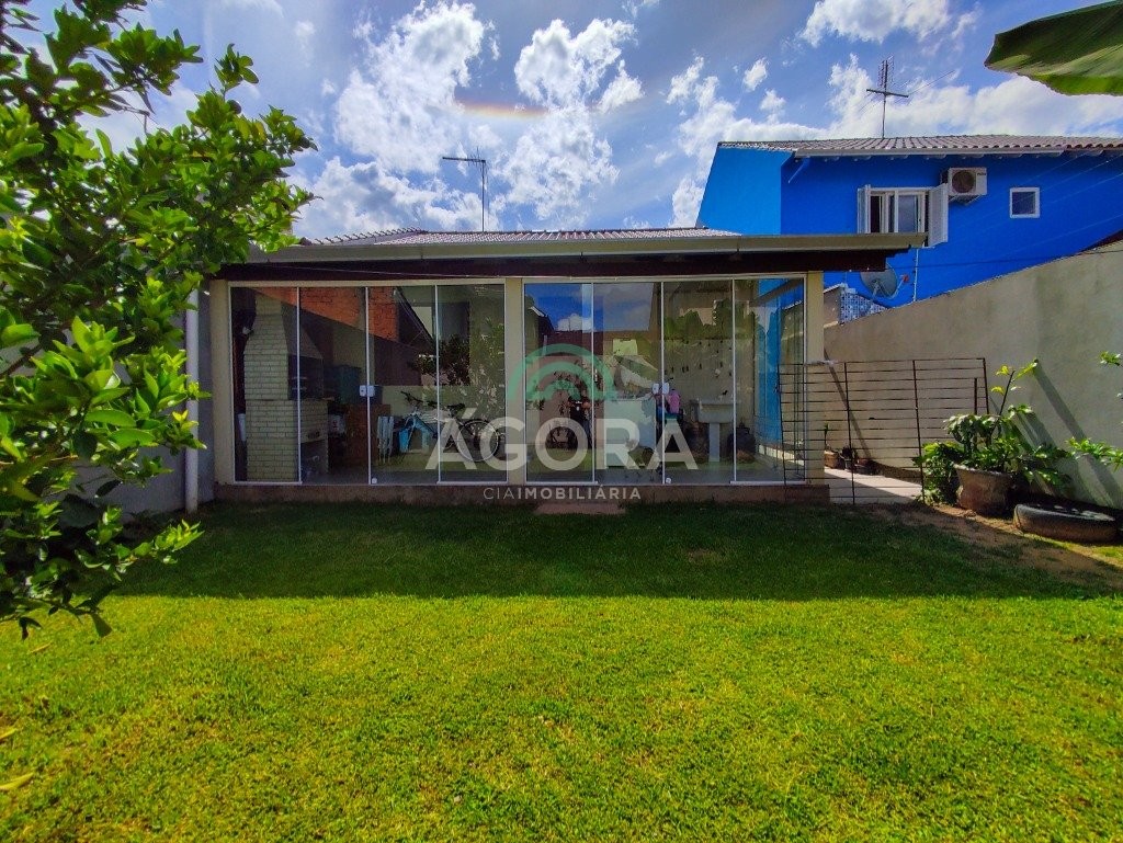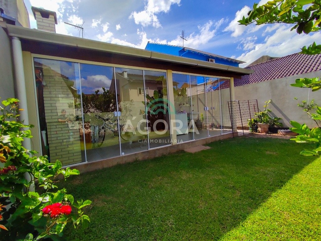Casa térrea de 104 m² com 2 (dois) dormitórios, living para 2 (dois) ambientes, banheiro social, lavanderia, piso em porcelanato, pátio na frente e nos fundos, entrada lateral, área gourmet com churrasqueira e com fechamento em vidro, portão eletrônico com fechamento rápido, sistema de alarme, permanecem os móveis da cozinha. Rua asfaltada, próximo ao supermercado carrefour, canoas shopping, farmácias, escolas, etc. Aceita imóvel de menor valor como parte de pagamento.