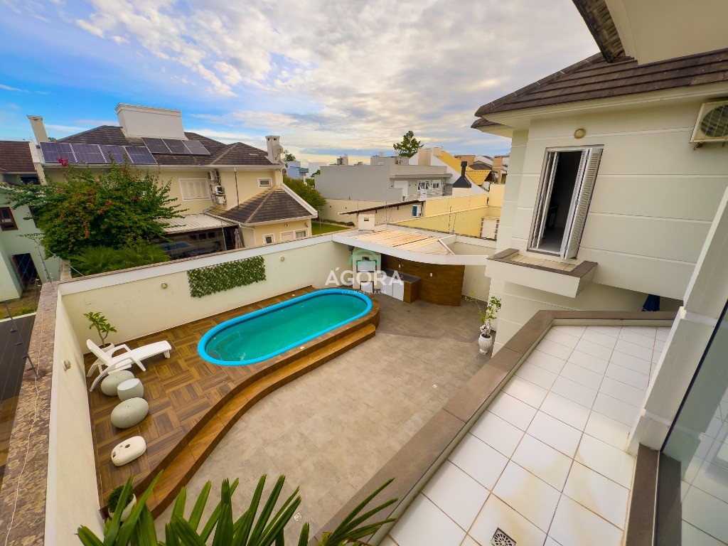 Ágora cia imobiliária vende: lindo sobrado residencial com 331,50 m² privativos, terreno 12 x 28, sendo: 4 (quatro) suítes todas com sacada, sendo uma master com closet e banheira com hidro, na parte térrea 01 ( dormitorio/escritório) e banheiro completo. Living para 02 (dois) ambientes com lareira, rebaixo em gesso, area de serviço, churrasqueira na garagem, cozinha com acesso ao pátio, piscina e espaço gourmet com churrasqueira, outra churrasqueira na piscina,mesanino com pé direto duplo. Garagem para 03 (três) cobertas e 02 (duas) descobertas. Ambientes bem distribuídos com ventilações e iluminação natural. Permanecerão todos os móveis sob medida. Próximo ao park shopping canoas, restaurantes, parque getúlio vargas e fácil acesso a br-116.