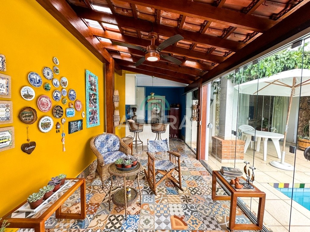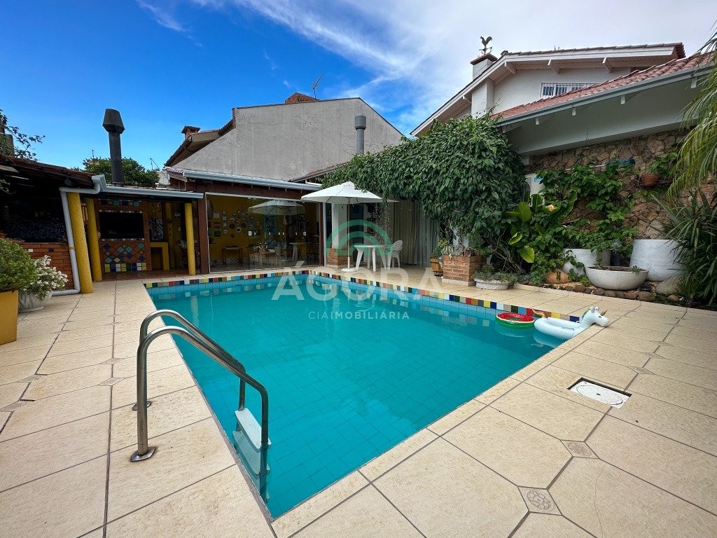 Agora cia imobiliária vende: Ótima casa térrea com 300 m² privativos que possui 03 dormitórios sendo 02 suítes, sala de estar e jantar separadas da cozinha, área de serviço, sóton, terraço, semi-mobliada, vaga para 06 veículos. Pátio aos fundos com piscina e quiosque completo fácil acesso a br e as principais as ruas da cidade.