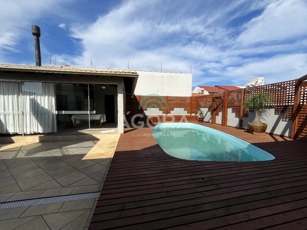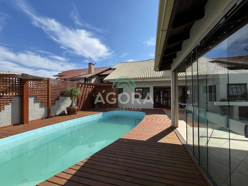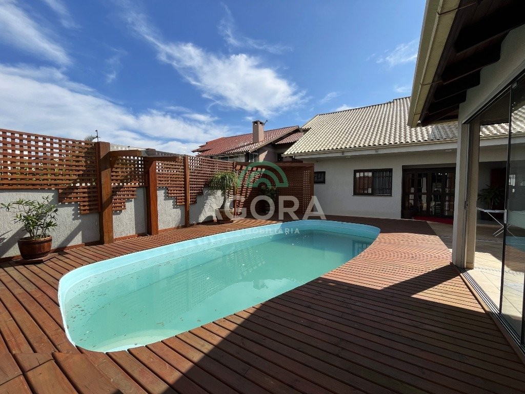 Casa térrea composto por 3 níveis de construção de 312,42 m², terreno com 360m² (12x30) com ótima posição solar , possui placa solar. No primeiro nível possui garagem escavada com capacidade para até 06 carros (04 cobertos) e sistema de gás p45. No segundo nível possui 3 (três) dormitórios sendo 2 (duas) suítes e 1 (uma) suíte master com banheira de hidromassagem, closet, (ar condicionado split em todas as suítes)12000btu na suíte master e 9000btu nas demais suítes, sala de estar com rebaixo em gesso, sala de jantar, lavabo, cozinha sob medida, área de serviço, despensa. A área externa do pátio conta com um belo espaço gourmet com churrasqueira totalmente fechado com portas de vidro de correr e lavabo, piscina de 8m x 4m x 1,40m (altura) com espera para aquecimento solar, iluminação de led com deck de madeira e cascata, espera para aquecimento, deck em pinus autoclavado, aberturas em louro freijó. No terceiro pavimento possui escritório/sala de tv e academia, ar condicionado split. 24000btu e ponto de gás para instalação de lareira. Todo murado e gradeado, sistema monitoramento por câmeras, cerca elétrica. Próximo ao park shopping canoas. Aceita financiamento e fgts.