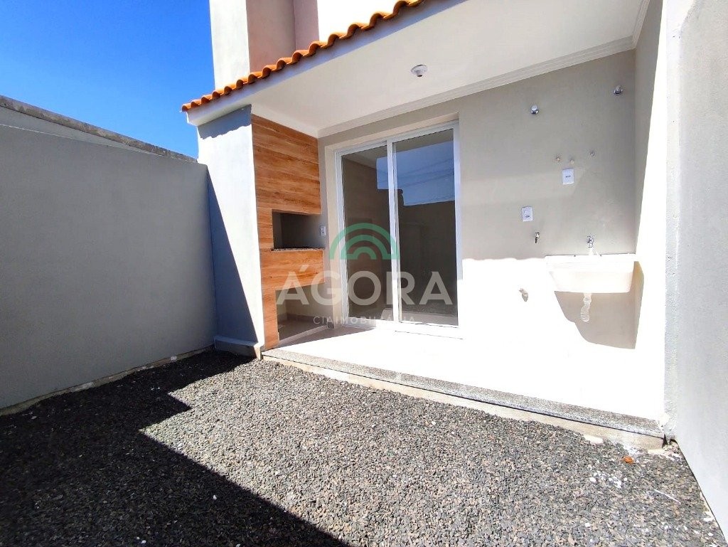 Ágora Cia. Imobiliária vde. Sobrado 3 (três) dormitórios, banheiro social, sala de estar e jantar integradas, lavabo, cozinha, área de serviço, área coberta com churrasqueira podendo usar como garagem coberta, 2 (duas) vagas descobertas adicionais, posição solar norte. Próximo a transporte, comércio, escolas e demais serviços.