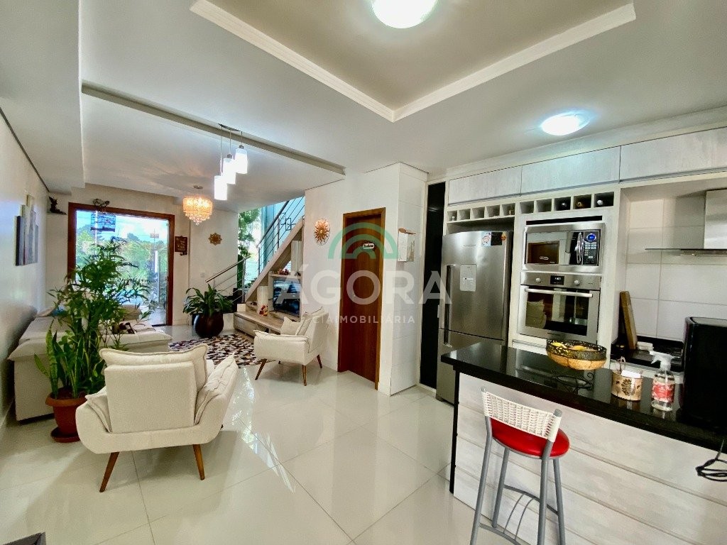 Ágora cia imobiliária vende: sobrado mobiliado de 178m² privativos com 3(três) dormitórios sendo 1(um) suíte master com banheiro, closet e sacada, terraço, living integrado entre sala de estar, jantar e cozinha, banheiro social, lavabo, área de serviço, garagem para 3(três) veículos, sendo 2(duas) vagas cobertas, pátio em frente e aos fundos, espaço gourmet completo com churrasqueira. Permanece no imóvel todos os móveis planejados, mobília solta, eletrodomésticos e aparelhos de ar condicionado, possui também, sistema de câmeras, cerca elétrica, aquecedor de água a gás com saída em todas as principais torneiras. Localizado no bairro mont serrat, em uma região em desenvolvimento, próximo ao asun center, park shopping canoas, mercados, farmácias e os principais pontos da cidade.