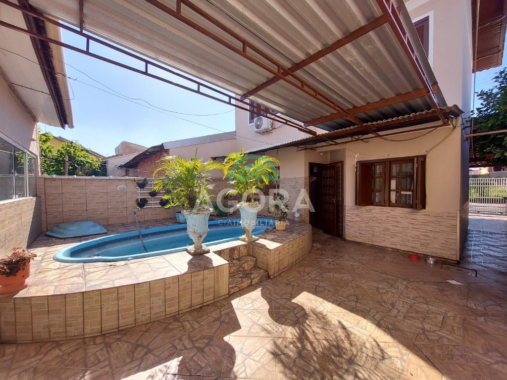 Sobrado de 189m² de área construída, com 3 (três) dormitórios, sendo 1 (uma) suíte, sala de estar e jantar, cozinha, banheiro socia. Nos fundos, uma excelente piscina e um amplo salão de festas com churrasqueira, pia e banheiro. Vaga para 2 (dois) carros lado a lado localizado no bairro harmonia, próximo ao carrefour, canoas shopping e diversos comércios.