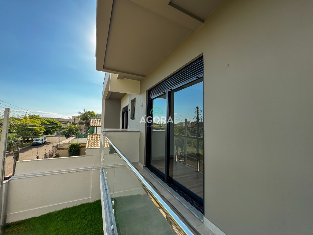 Sobrado alto padrão, 223m², em frente a praça, rua calma, 3 ( três) suítes, living 3 (três) ambientes, cozinha com espaço p ilha de aproximadamente 4 m, churrasqueira, lavabo, lareira, espera para piscina, gesso, porcelanato, laminado nos dormitórios, espera para split, aquecimento solar, 2( duas) vagas cobertas, 2 descobertas.